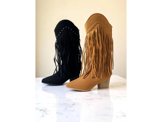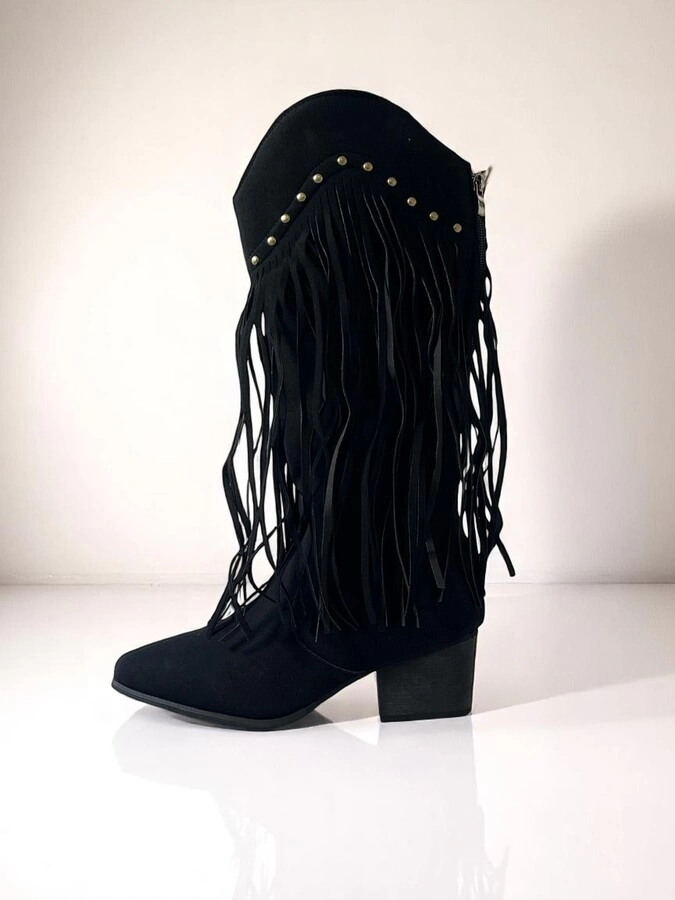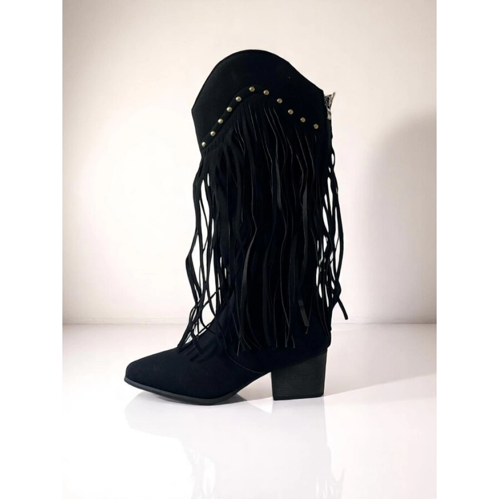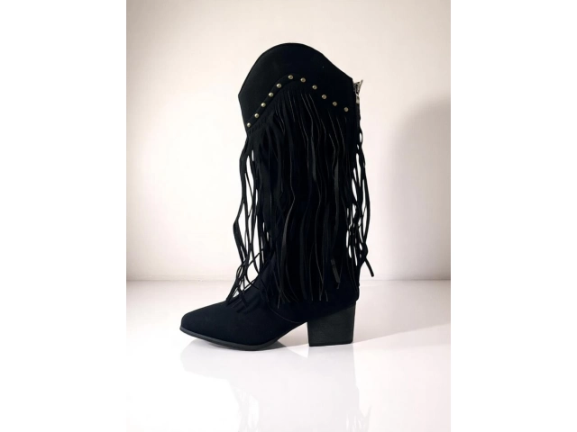 Bota corta de cuero sintético negro, con detalle de hebilla lateral. Base plana.