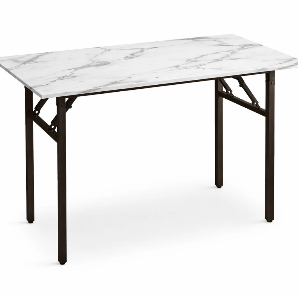 Mesa rectangular con estructura metálica negra y tapa imitación madera. Robusta y versátil para múltiples usos. Medidas: 123x12x62 LA CAJA CERRADA CONTIENE: 1 UNIDAD