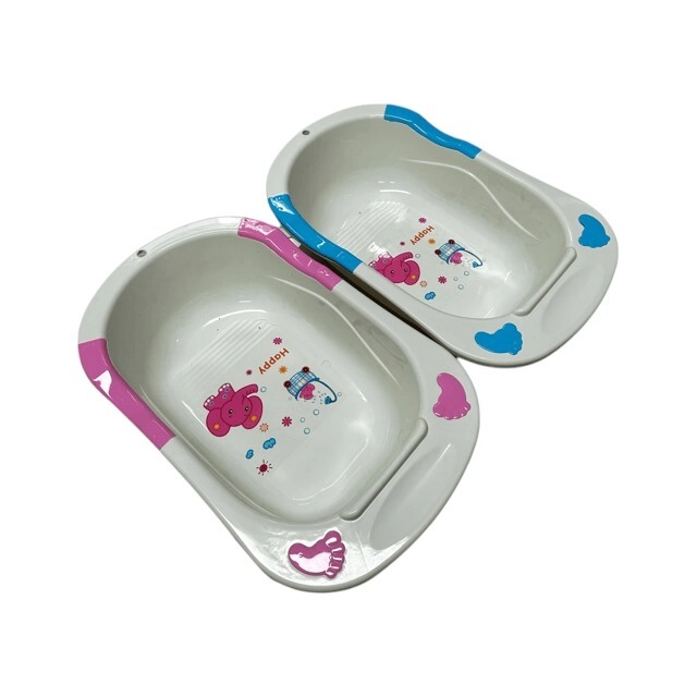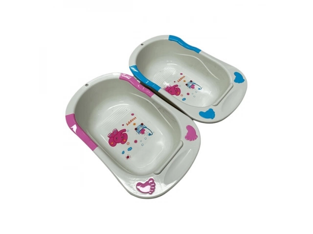 Bañera plástica infantil con dibujos coloridos. Resistente y cómoda para el uso diario. Disponible en varios colores. La caja cerrada contiene: 20 unidades