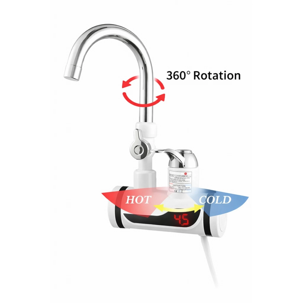 Grifo eléctrico instantáneo con ducha Display digital LED con temperatura Material: Plástico resistente y acero inoxidable Incluye: -Pico giratorio -Manguera flexible con ducha manual -Cable enchufe