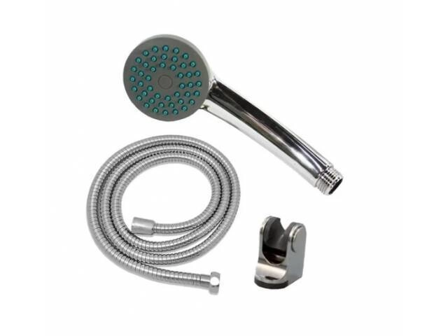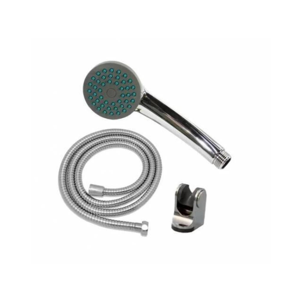 Set de ducha de mano con manguera metálica de 1.5 m, cabezal multipunto y conexión estándar. Fabricado en ABS resistente con acabado cromado. Instalación rápida y compatible con la mayoría de duchas domésticas. LA CAJA CONTIENE: 50 UNIDADES