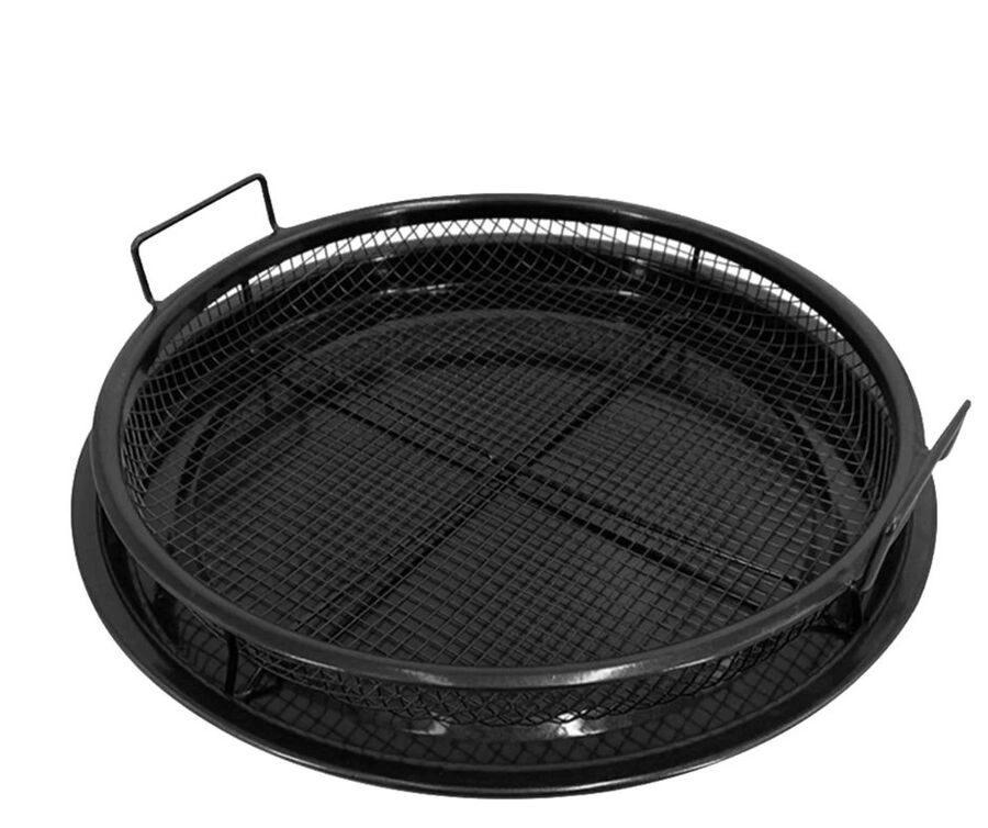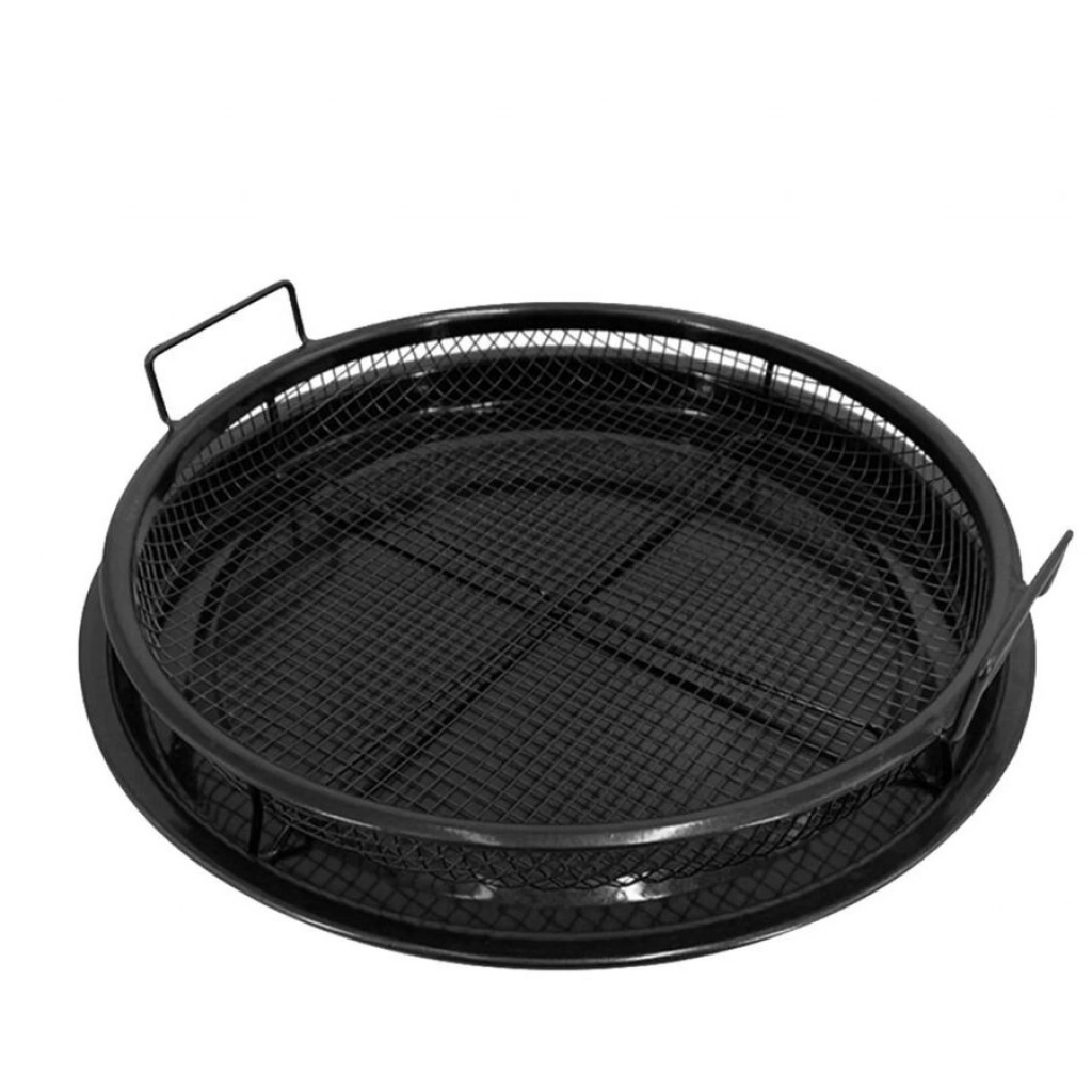 Bandeja redonda metálica con asas, ideal para horno o parrilla. Resistente y práctica para cocinar pizzas, carnes o vegetales y servir con comodidad. Medidas: 30×5 cm.