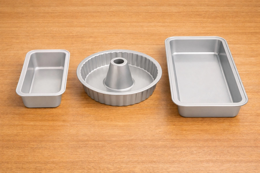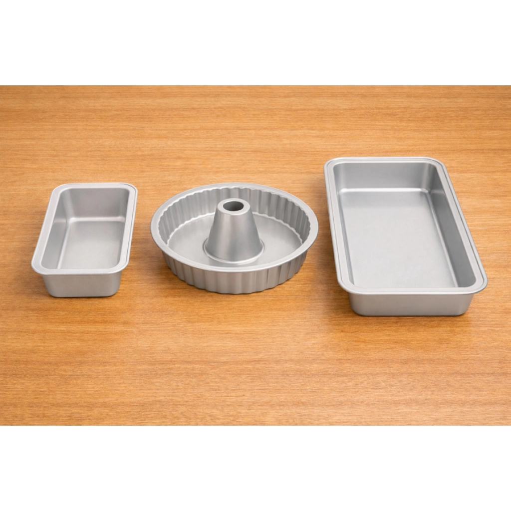 Set de tortera y dos budineras, resistentes y prácticas. Ideales para hornear y presentar tartas o budines. Diseño funcional en dos tonos neutros, perfecto para uso diario en el hogar.