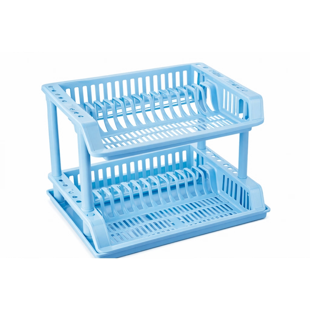 Escurridor de platos de dos niveles, ideal para optimizar el espacio en tu cocina. Fabricado en plástico resistente, cuenta con ranuras para platos, base perforada para drenaje eficiente y diseño liviano y práctico. Fácil de armar y limpiar, perfecto para el uso diario.