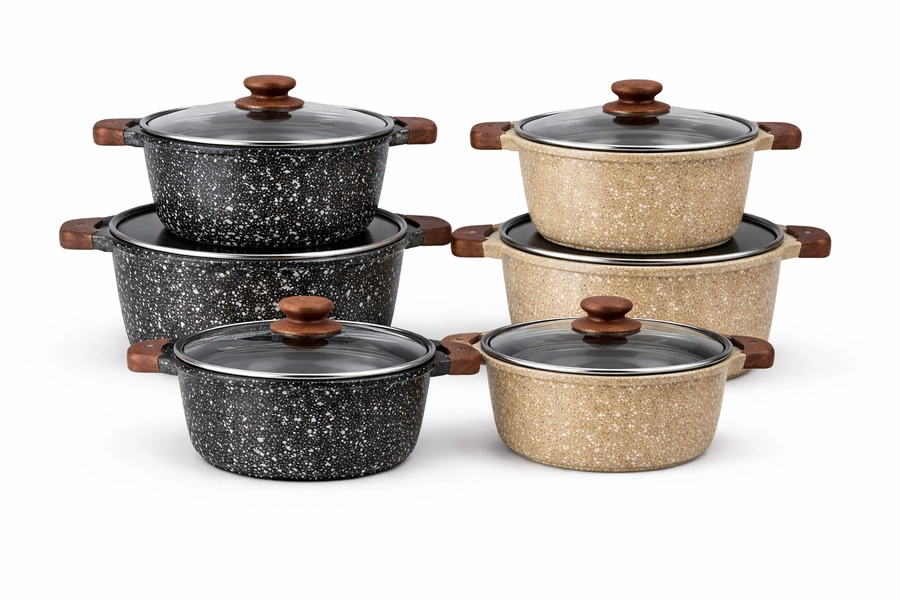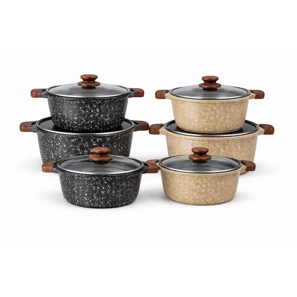 Juego de Ollas de 5 Piezas ? Antiadherentes Tipo Mármol Tamaños incluidos: 20 cm / 24 cm / 28 cm / 32 cm Características: Diseño tipo mármol en colores negro y beige. Construcción resistente y duradera. Superficie antiadherente para cocinar con menos aceite. Asas amplias y ergonómicas para un agarre seguro. Distribución uniforme del calor. Apta para cocina de gas y eléctrica. LA CAJA CONTIENE: 2 UNIDADES
