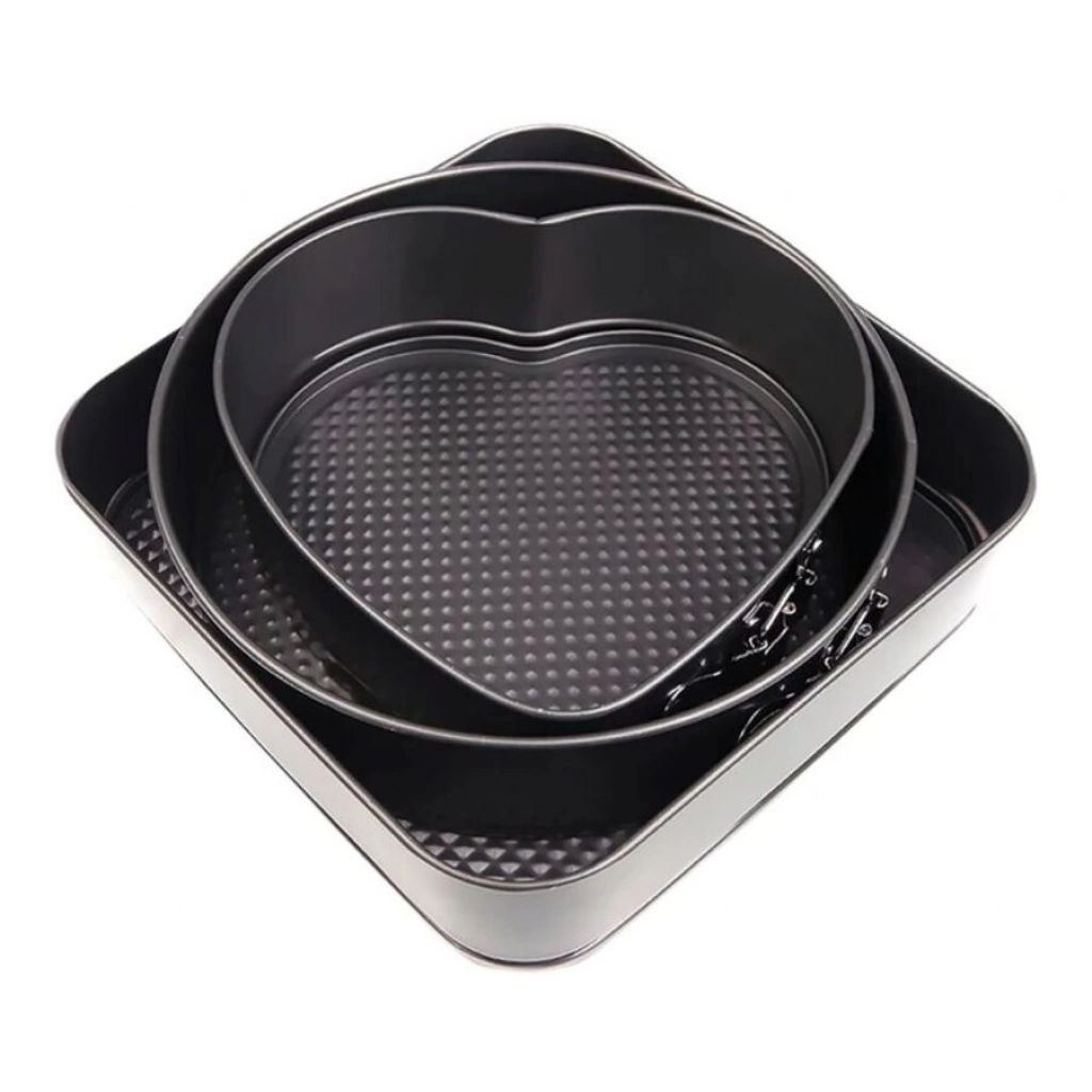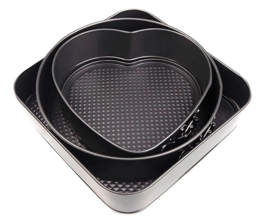 Set de moldes metálicos antiadherentes en tres tamaños (24, 26 y 28 cm). Resistentes, livianos y fáciles de limpiar, ideales para hornear tortas, tartas y preparaciones caseras con excelente desmolde. LA CAJA CONTIENE: 12 SETS