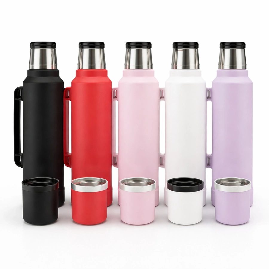 Termo + mate varios colores. Incluye termo térmico de 1300 ml con manija, tapa que funciona como mate LA CAJA CERRADA CONTIENE: 20 UNIDADES