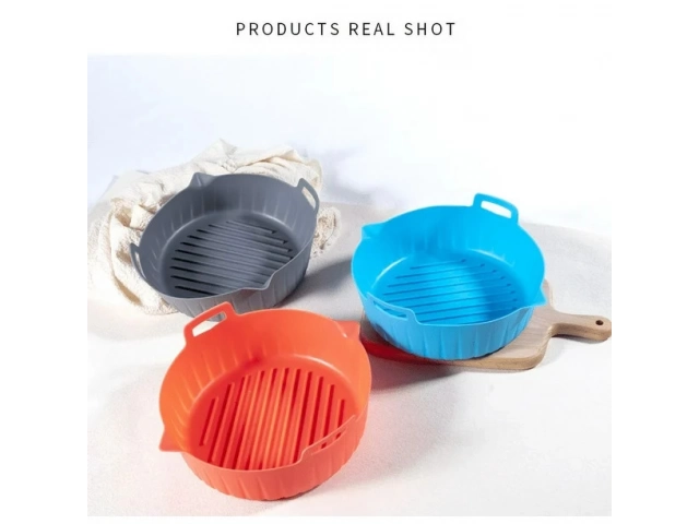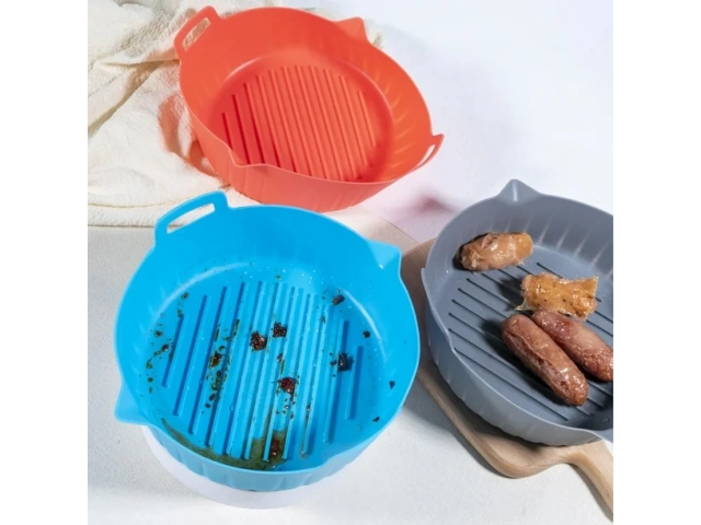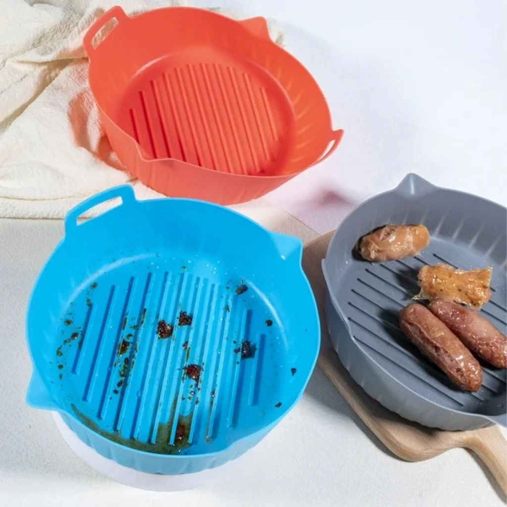 Bandeja de silicona de 18 cm ideal para freidoras de aire. Antiadherente, reutilizable y fácil de limpiar. Resiste altas temperaturas.