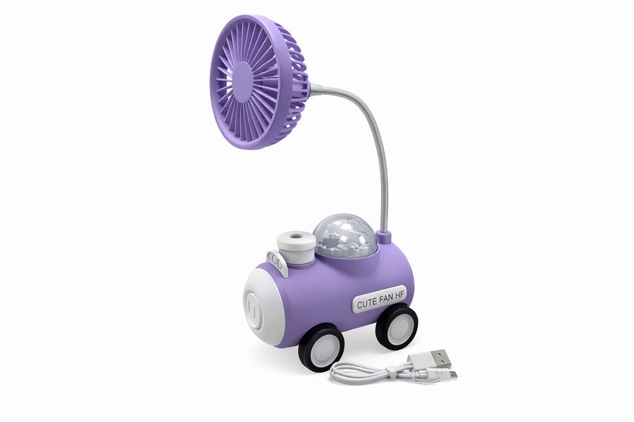 Ventilador portátil USB con diseño decorativo tipo auto, cuello flexible orientable y base estable. Ideal para escritorio, ofrece ventilación focalizada con bajo consumo energético, funcionamiento silencioso y tamaño compacto para uso personal en hogar u oficina. LA CAJA CERRADA CONTIENE 120 UNIDADES EN 4 COLORES SURTIDOS