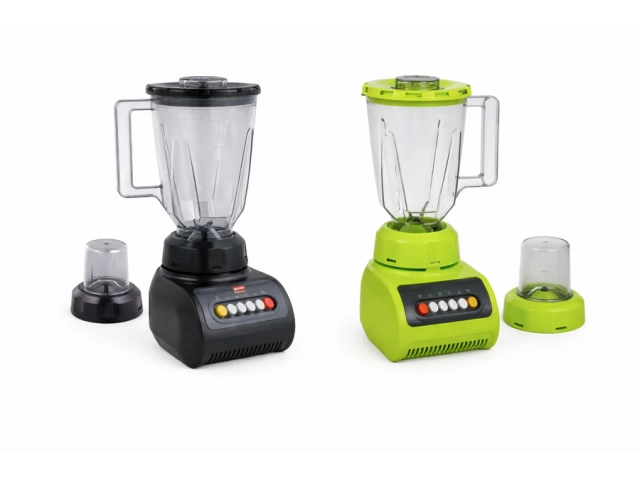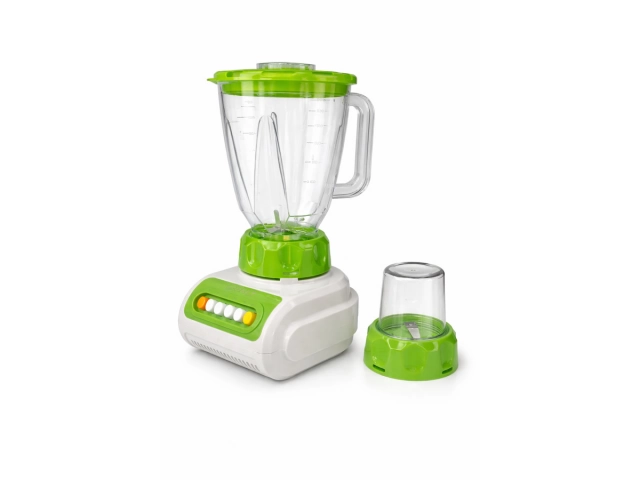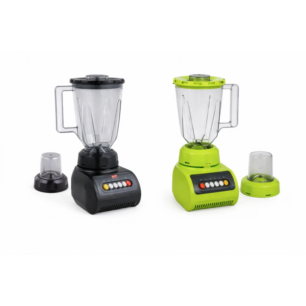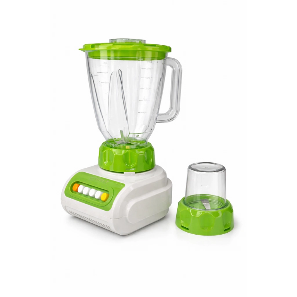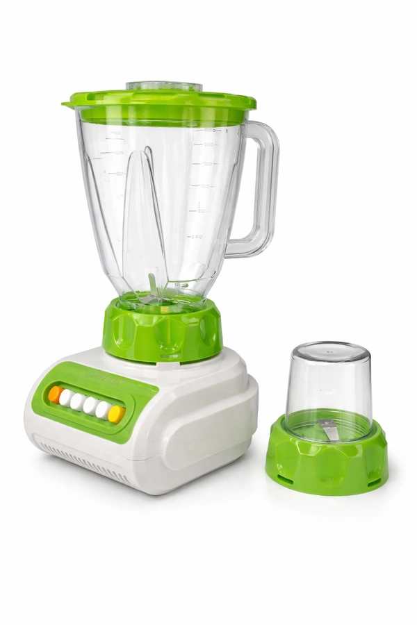 Licuadora Okey con vaso de vidrio, 4 velocidades y función pulso. Incluye molinillo para granos y especias. Potente, práctica y ideal para preparar batidos, salsas y mucho más.
