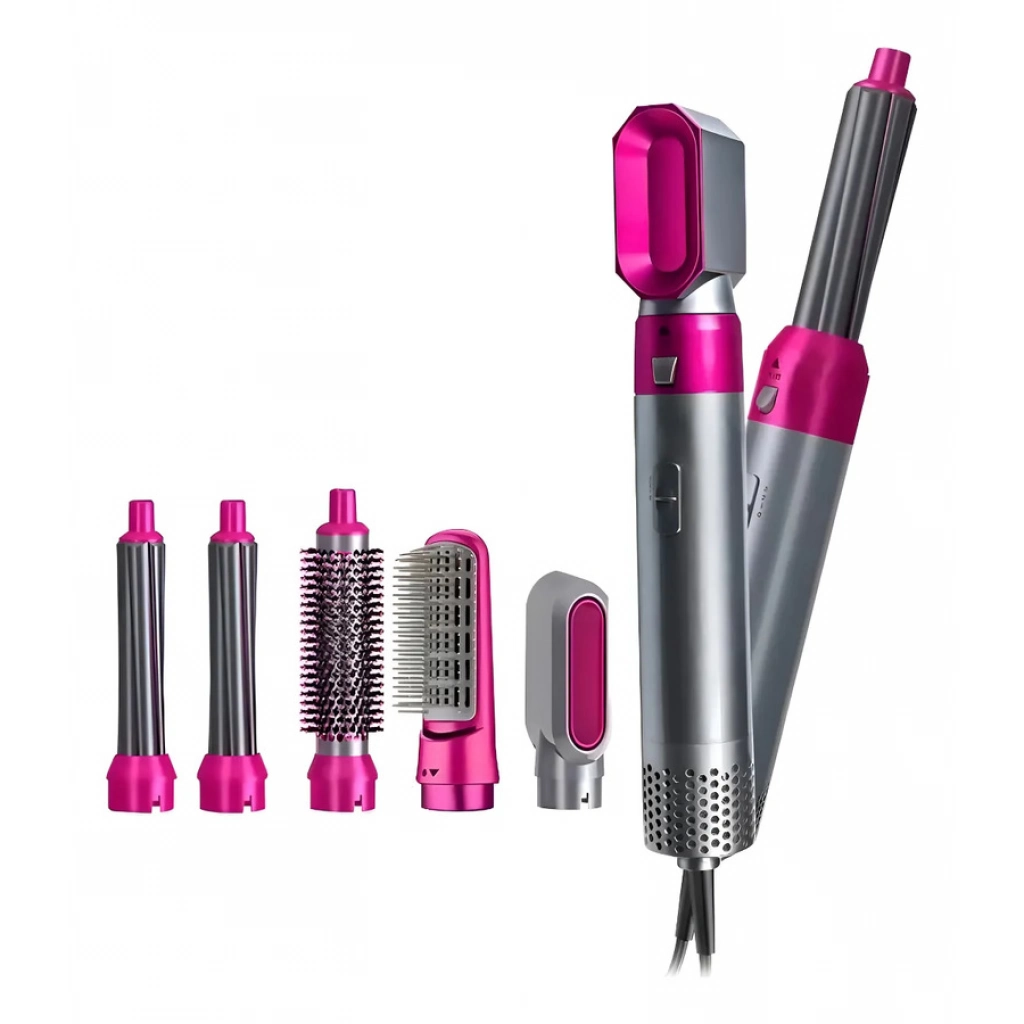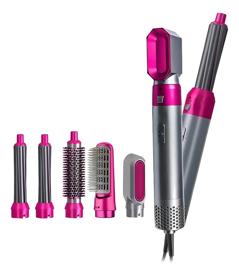 Set profesional 5 en 1 para peinar, alisar y dar volumen. Incluye cabezales intercambiables (cepillos y rizador), aire caliente, calentamiento rápido y control de temperatura. Ideal diario/viajes. LA CAJA CERRADA CONTIENE: 30 UNIDADES