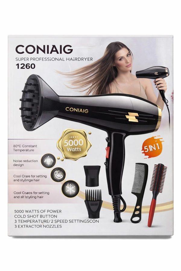Secador de pelo con accesorios 220v 5000w CANTIDAD POR CAJA: 24 UNIDADES