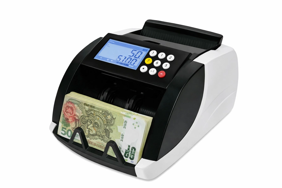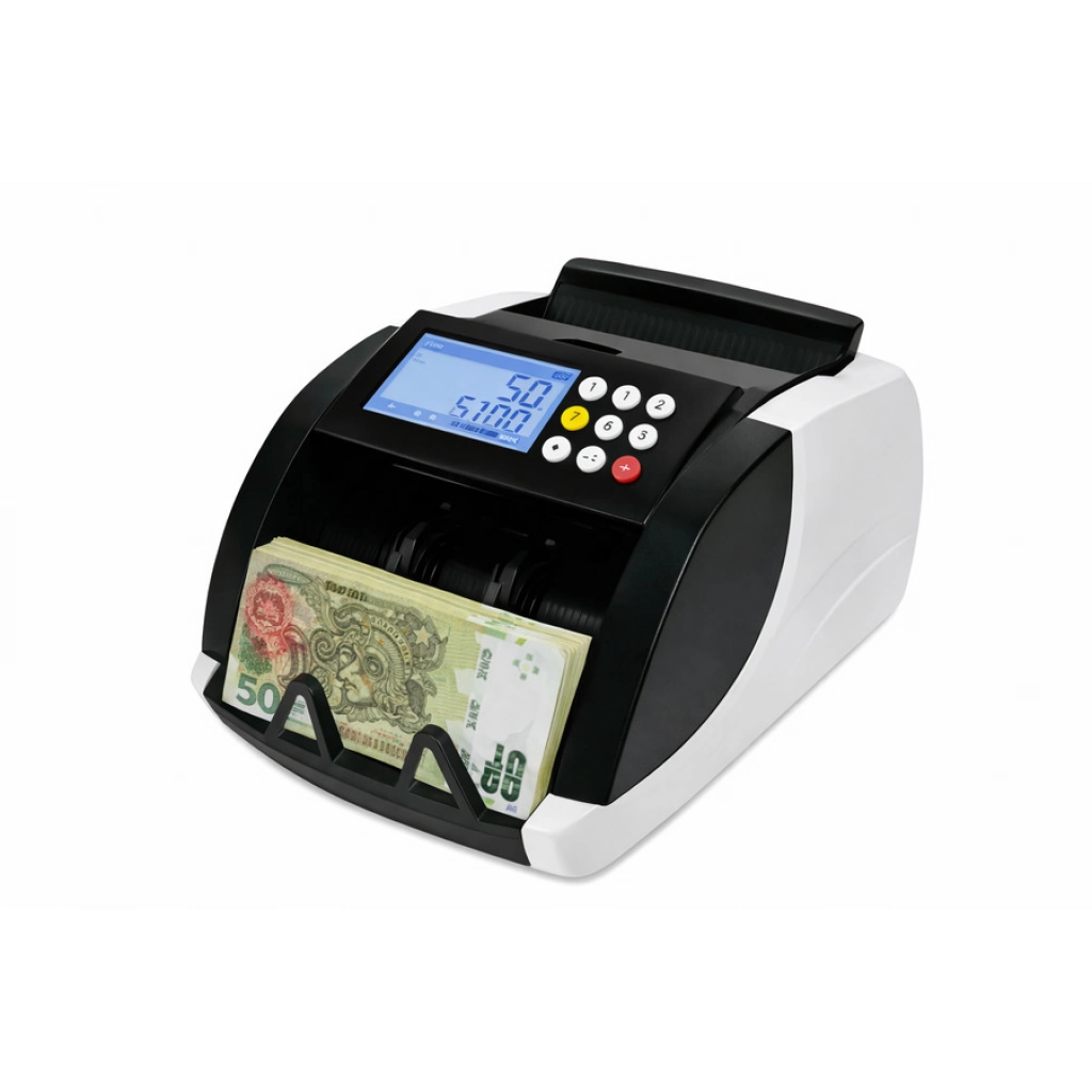 Máquina contadora de billetes rápida y precisa, ideal para comercios, oficinas y bancos. Cuenta con pantalla LCD de fácil lectura y panel de control intuitivo. Detecta billetes automáticamente y agiliza el conteo de efectivo, ahorrando tiempo y reduciendo errores. Diseño compacto y resistente.