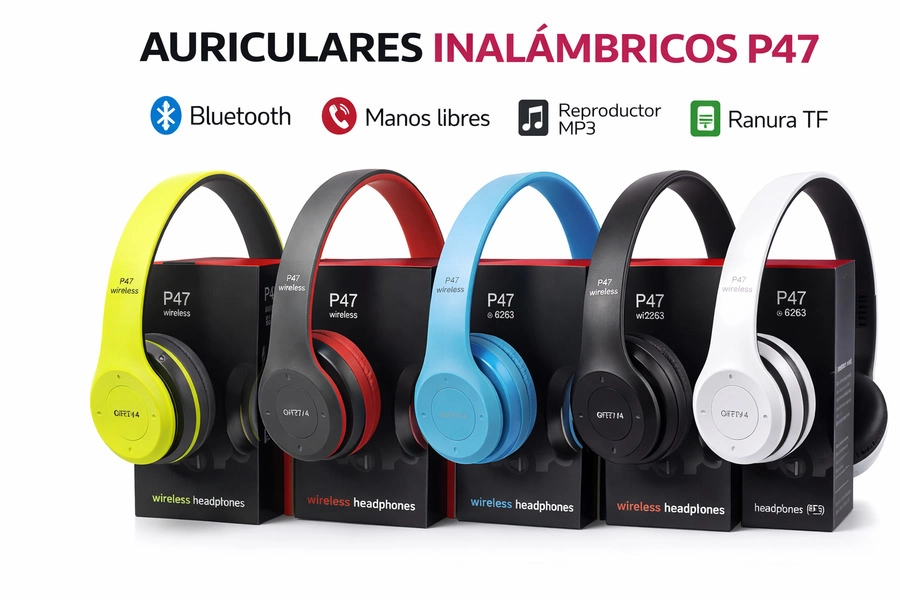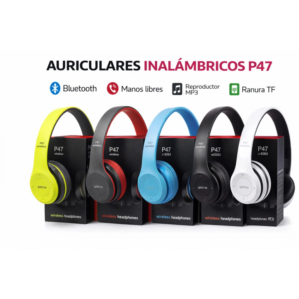 Los auriculares ofrecen conexión Bluetooth estable, sonido estéreo de alta calidad y diseño plegable para fácil transporte. Integran controles laterales para volumen, pistas y llamadas. Incluyen radio FM, ranura para tarjeta TF y opción de uso con cable auxiliar. Su batería recargable brinda varias horas de reproducción continua. Cómodos, livianos y disponibles en varios colores. LA CAJA CERRADA CONTIENE: 100 UNIDADES