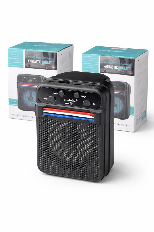Parlante portátil con luces LED y diseño moderno. Buen sonido y volumen ideal para reuniones o uso diario. Compacto, práctico y fácil de trasladar. Bocina de 4''