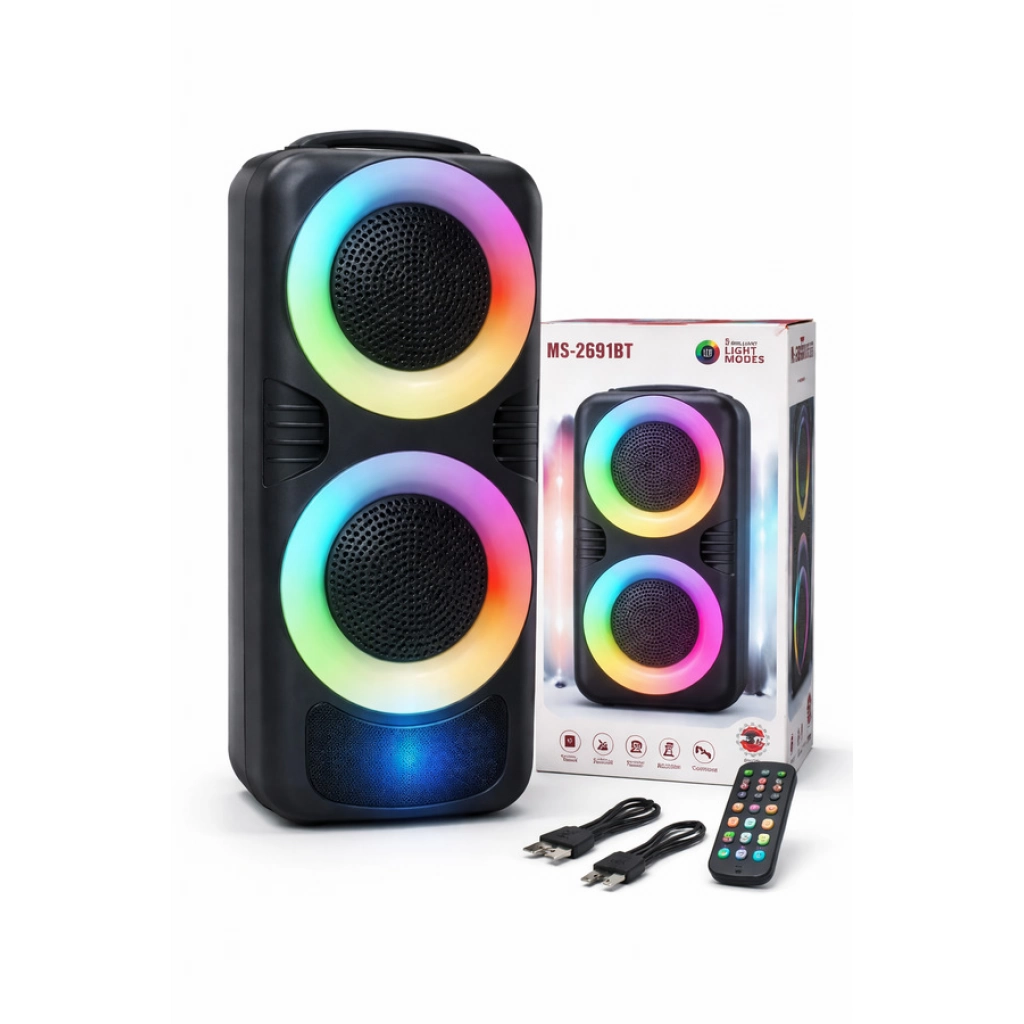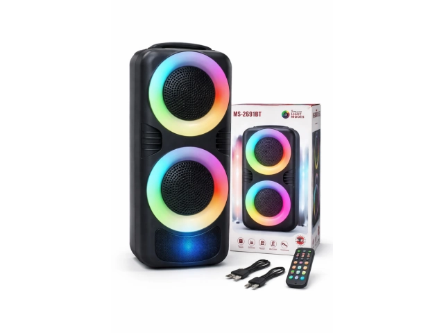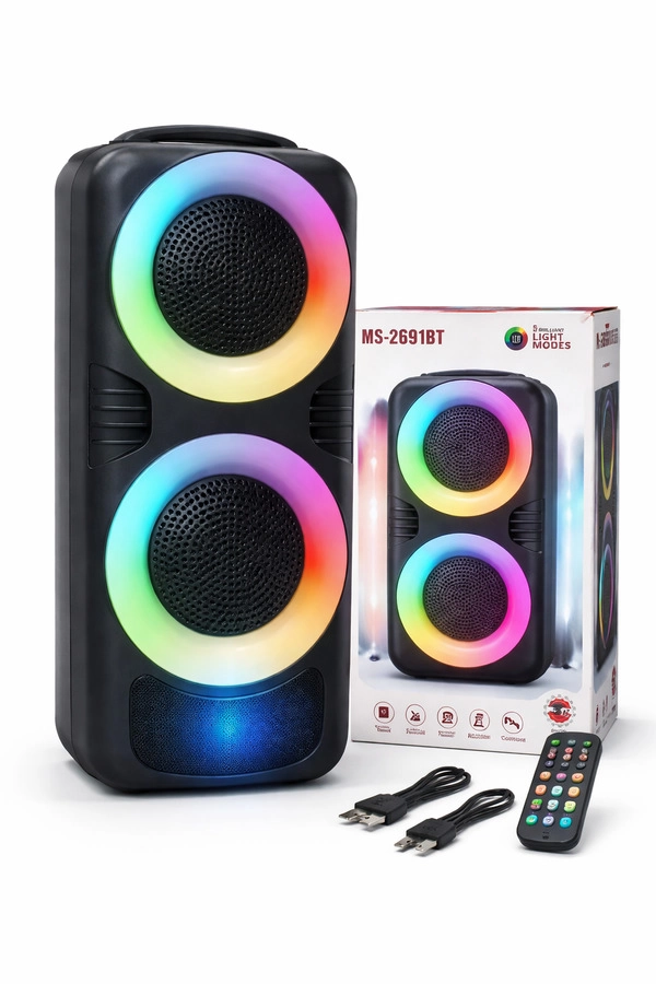 Parlante multimedia portátil ideal para fiestas, reuniones o uso diario. Cuenta con sonido potente, doble parlante frontal y efectos de luces LED multicolor que acompañan la música. Con conectividad Bluetooth para reproducir desde el celular u otros dispositivos, además de controles sencillos y diseño moderno. Medidas: 25 x 15 cm Características destacadas: Conexión Bluetooth Luces LED decorativas Diseño compacto y fácil de transportar Ideal para interiores y exteriores Uso práctico y versátil para música y entretenimiento Perfecto para quienes buscan buen sonido en un tamaño compacto.