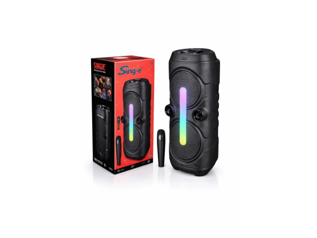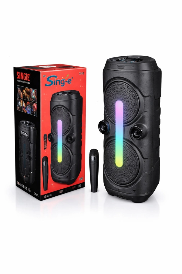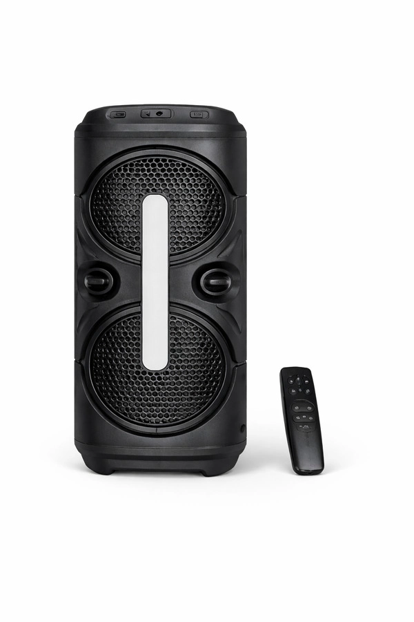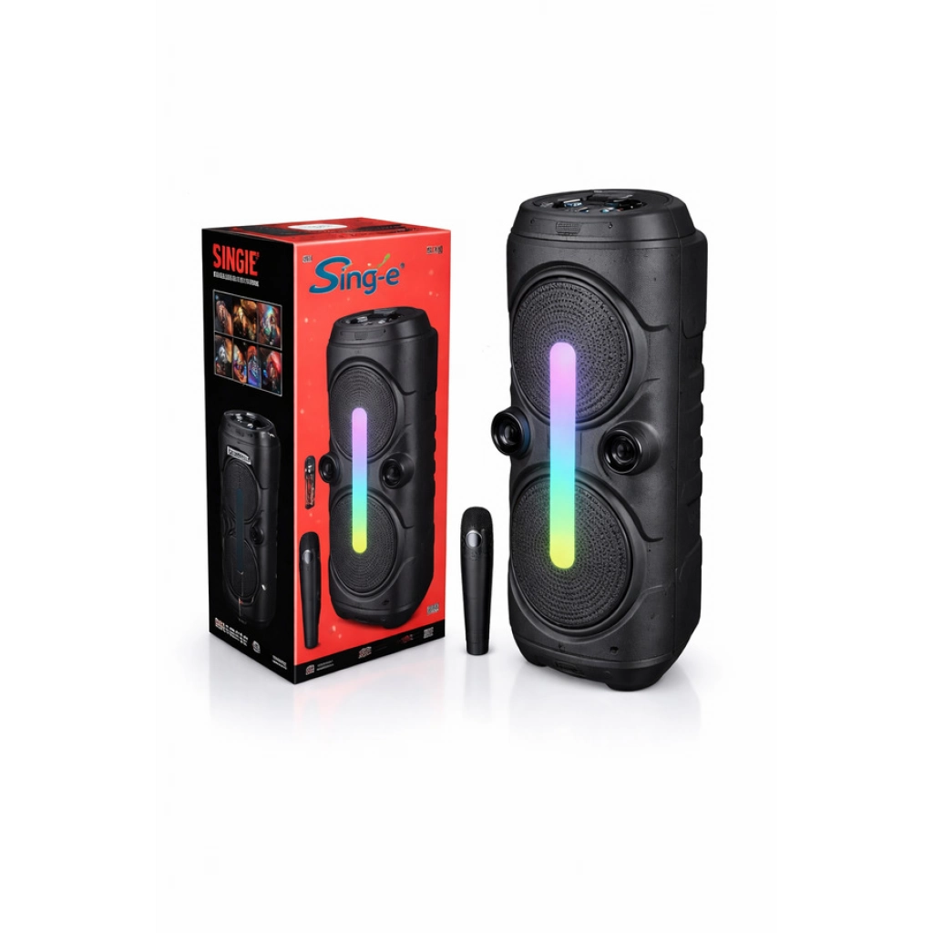Parlante Doble 6.5'' Tamaño: 50 × 19 cm Incluye: 1 micrófono inalámbrico Características Material: Plástico resistente CANTIDAD POR CAJA: 8 UNIDADES Potencia: 5W × 2 Altavoces: 2 woofers de 6.5 pulgadas Batería: 18650 / 3.7V / 1500 mAh Funciones: Bluetooth, USB, tarjeta TF, FM Accesorios Micrófono inalámbrico Cable de carga Type-C Compacto, portátil y con gran sonido para reuniones, eventos o uso en casa. LA CAJA CONTIENE: 8 UNIDADES