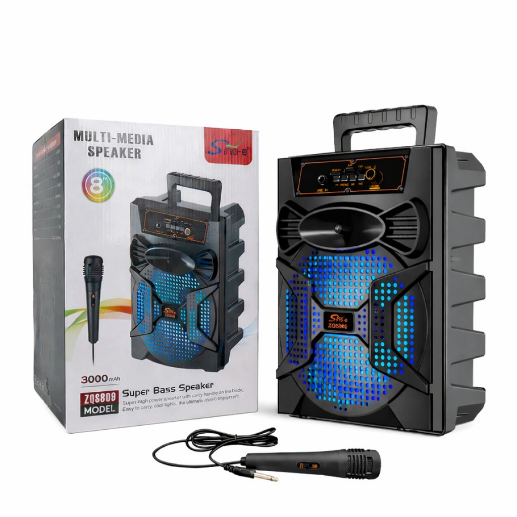 PARLANTE + MICROFONO 8" MEDIDAS: 225X172X312MM BT/USB/TF/MIC/FM/AUX/TWS 18650 3.7V/ 1800MAH 9W CANTIDAD POR CAJA: 16 UNIDADES