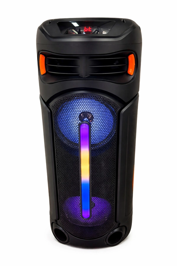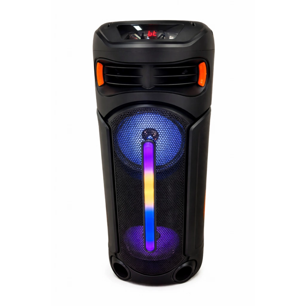 PARLANTE BOCINA DOBLE 8" BT / FM / con micrófono / con AUX / USB / tarjeta TF / TWS 18650 / 3,7 V / 3600 mAh / 9 W × 2 Medidas:28x29x80,8cm CANTIDAD POR CAJA: 1 UNIDADES