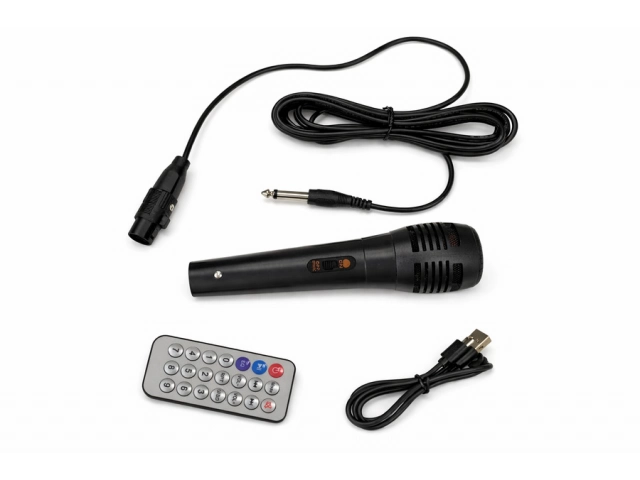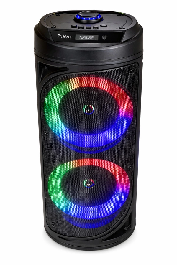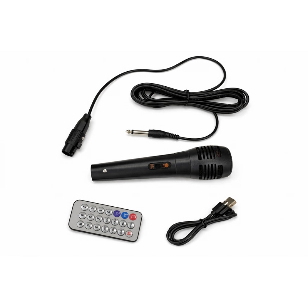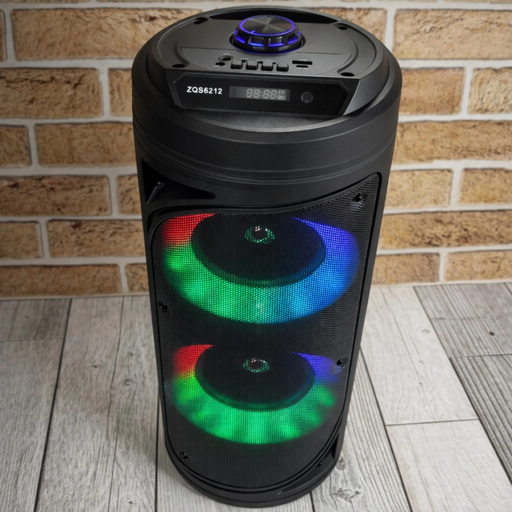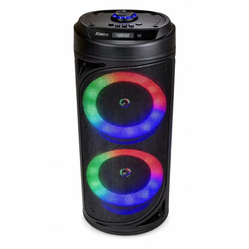 Parlante portátil de 4" con doble bocina, sonido potente y buen rendimiento. Ideal para música en casa o exteriores. Diseño compacto y fácil de transportar. Medidas: 40×15.5 cm.