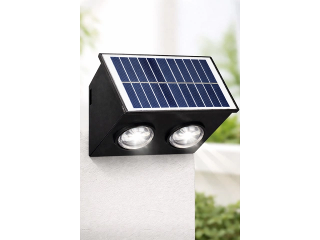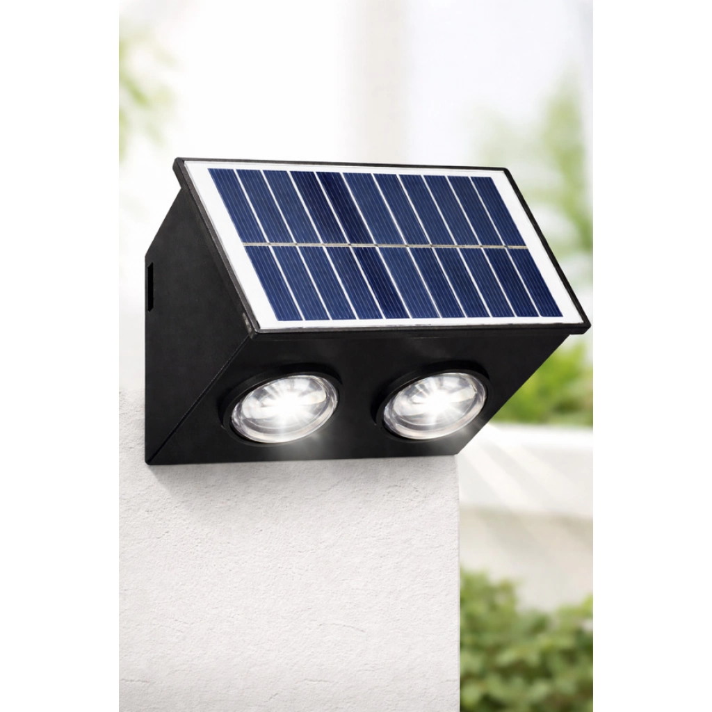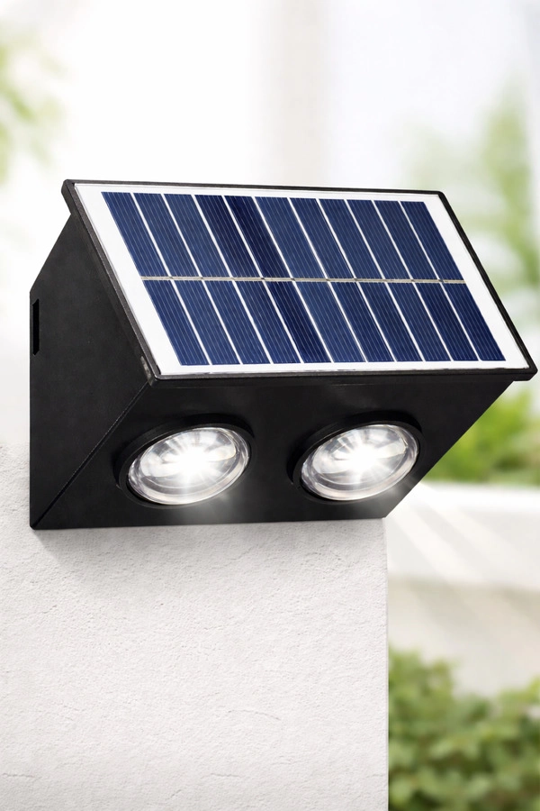 Luz solar para exterior con panel integrado. Se carga con energía solar y enciende automáticamente. Ideal para entradas, patios o jardines. Incluye 2 luces.