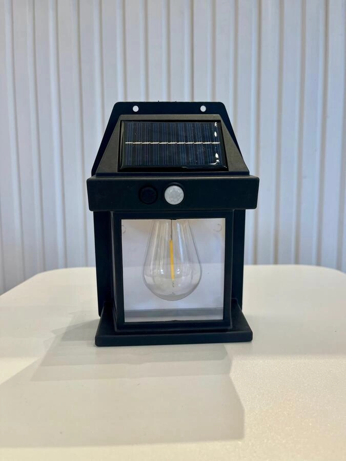 Aplique solar LED para exterior con panel integrado. Iluminación automática y decorativa, ideal para entradas, patios y jardines. Funciona sin cables. Incluye 4 luces