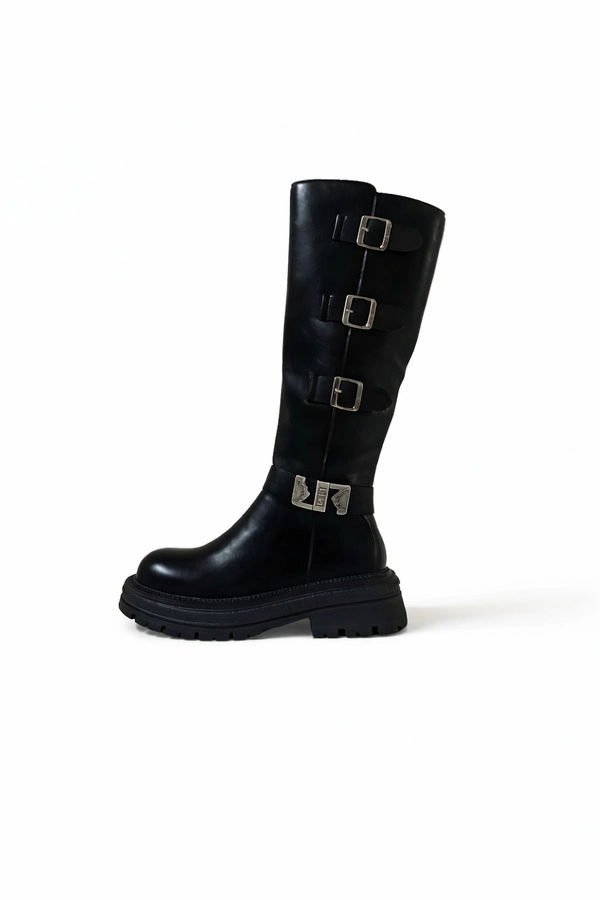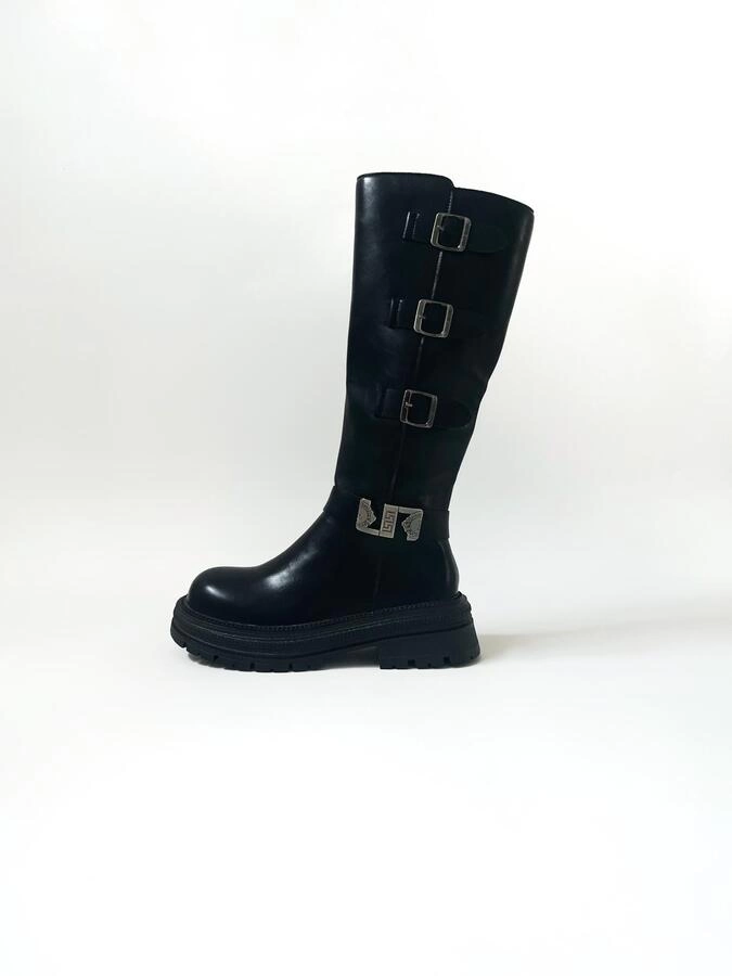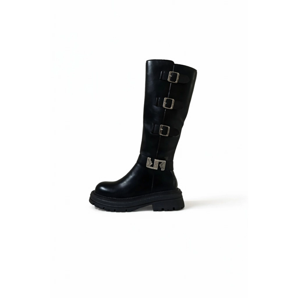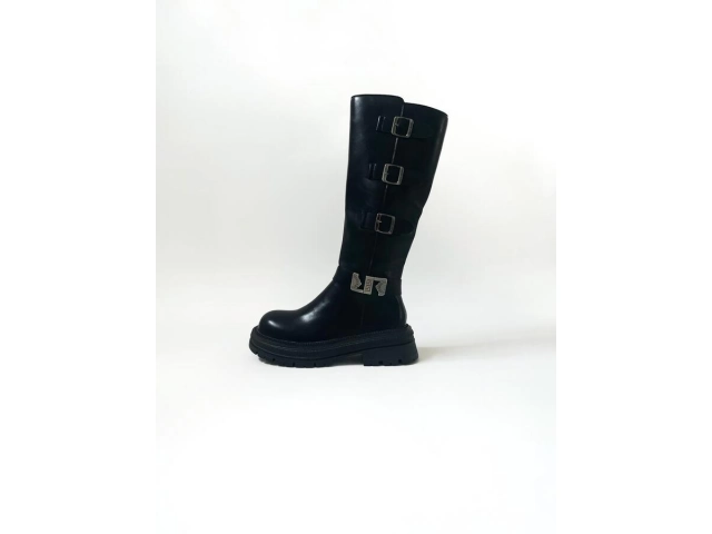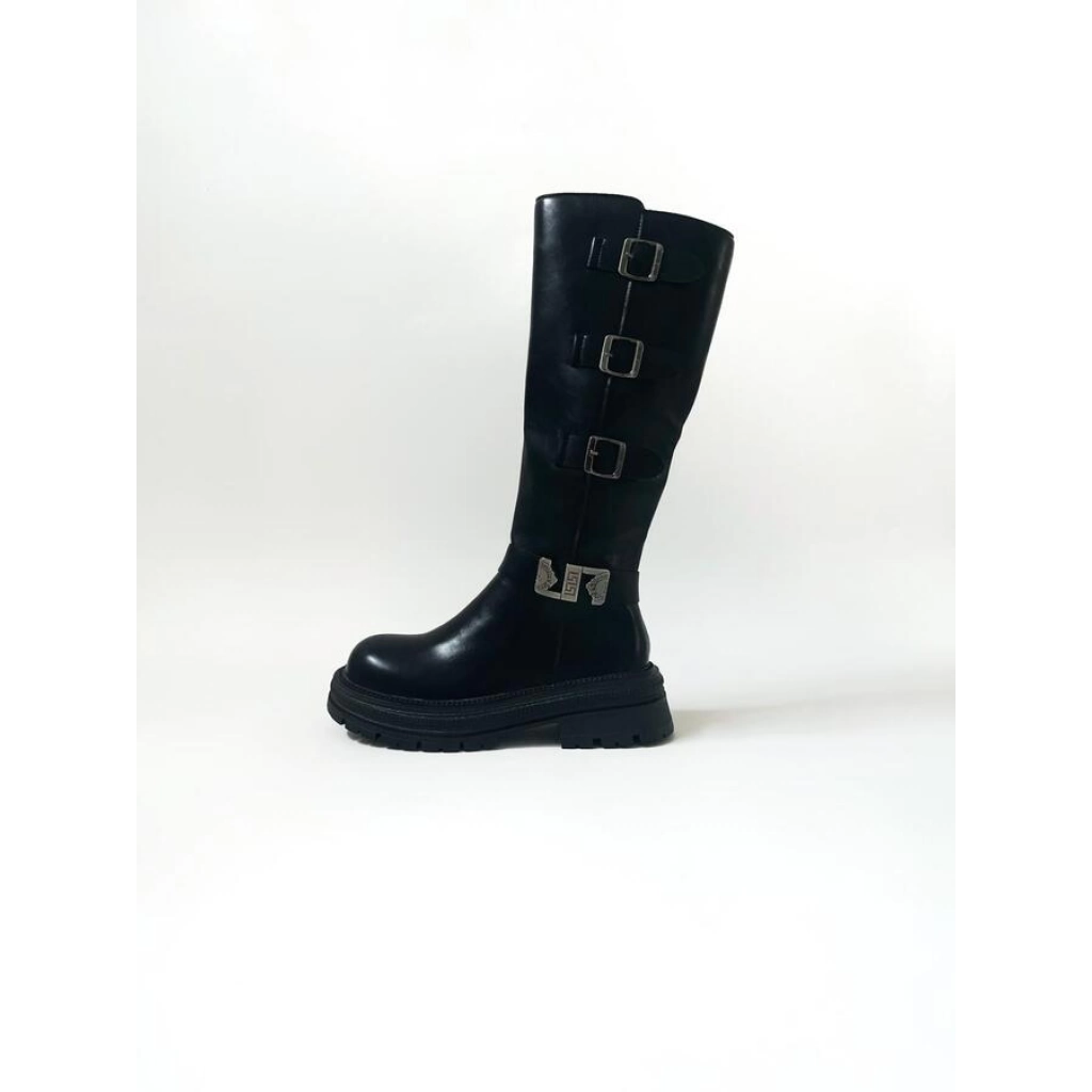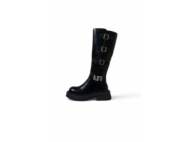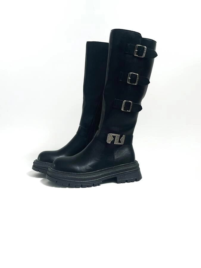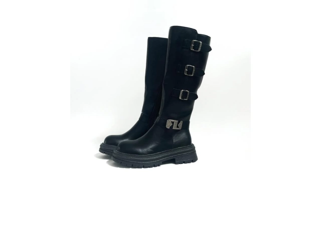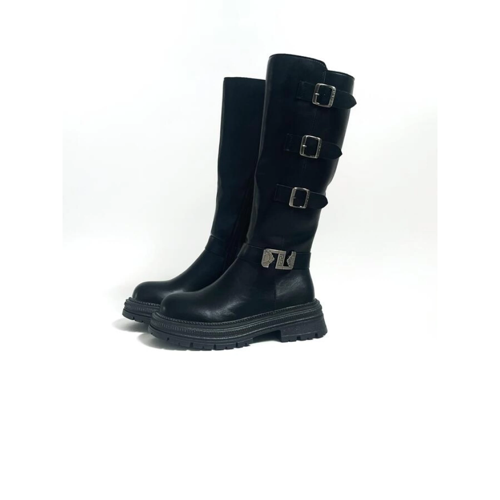 Botas de gamuza sintética con diseño texano y flecos laterales. De caña media, punta semi-fina y taco bajo.