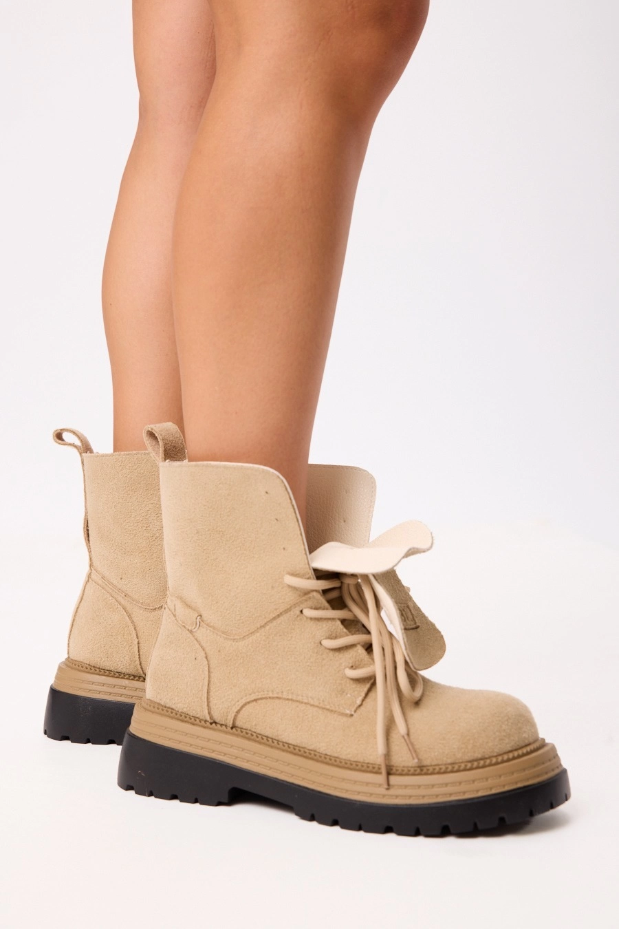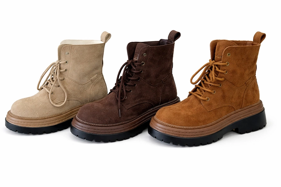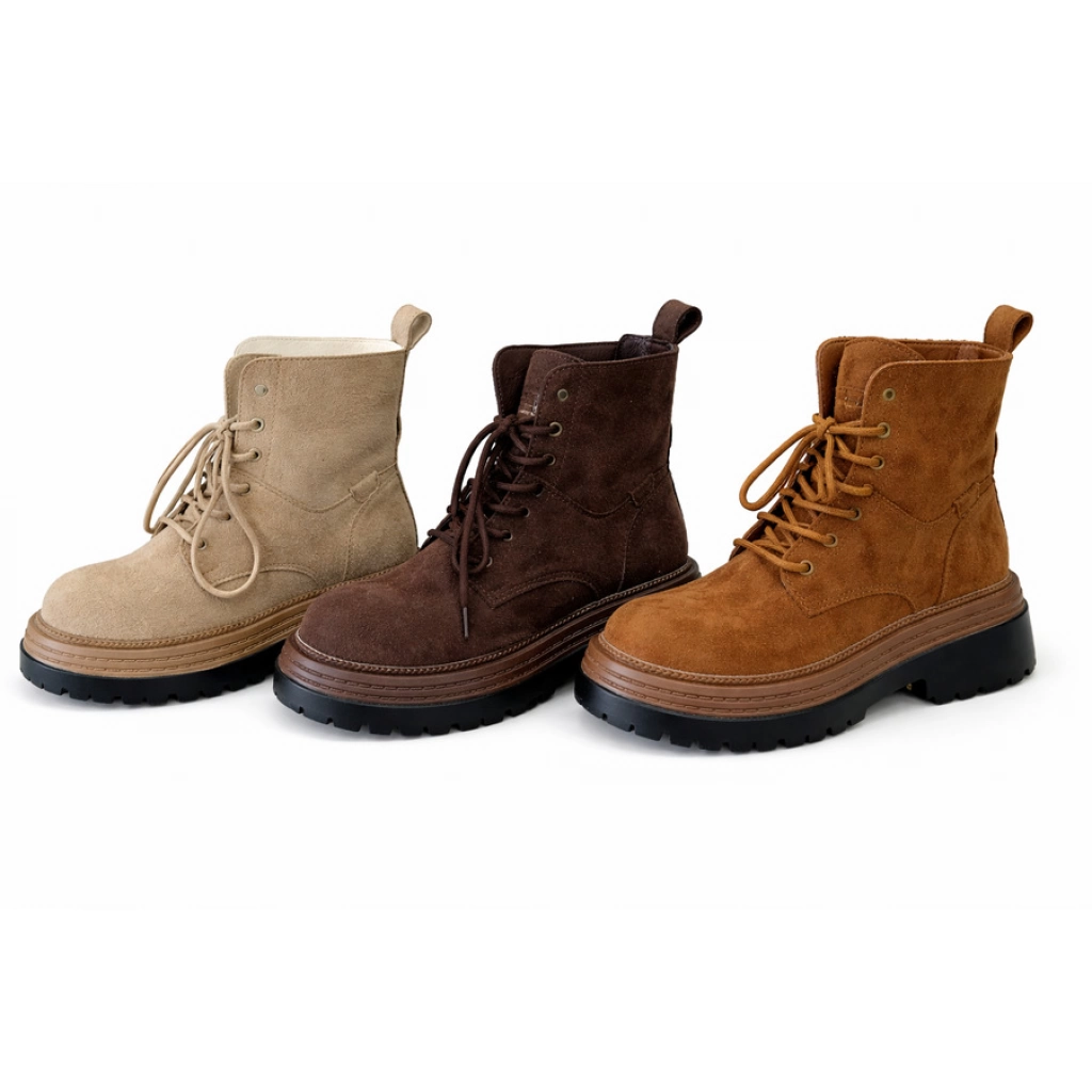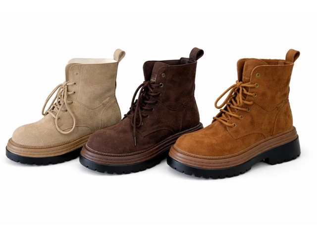 Botas de gamuza ? Talles 36 / 37 / 38 / 39 / 40 Marrón claro Beige Marrón oscuro Características: Material tipo gamuza suave. Suela gruesa, antideslizante. Caña corta con lengüeta ancha y cordones. Diseño casual y moderno. LA CAJA CONTIENE:30 UNIDADES
