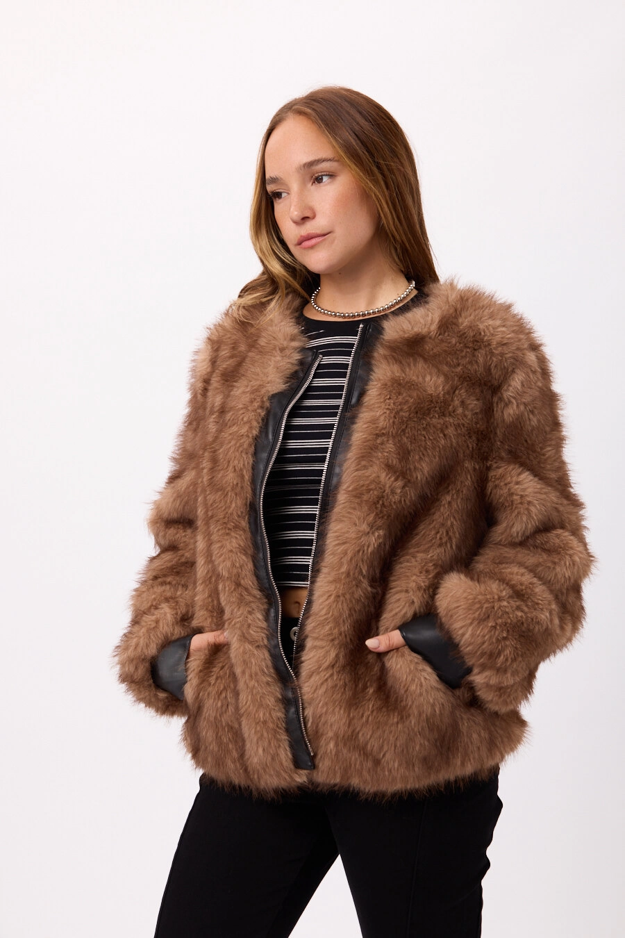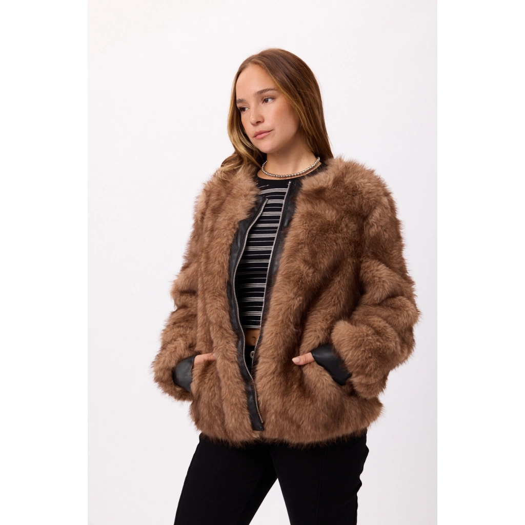 Campera de piel sintética con cierre frontal, súper abrigada y elegante. Colores: negro y marrón. Talles disponibles: M/L/XL.