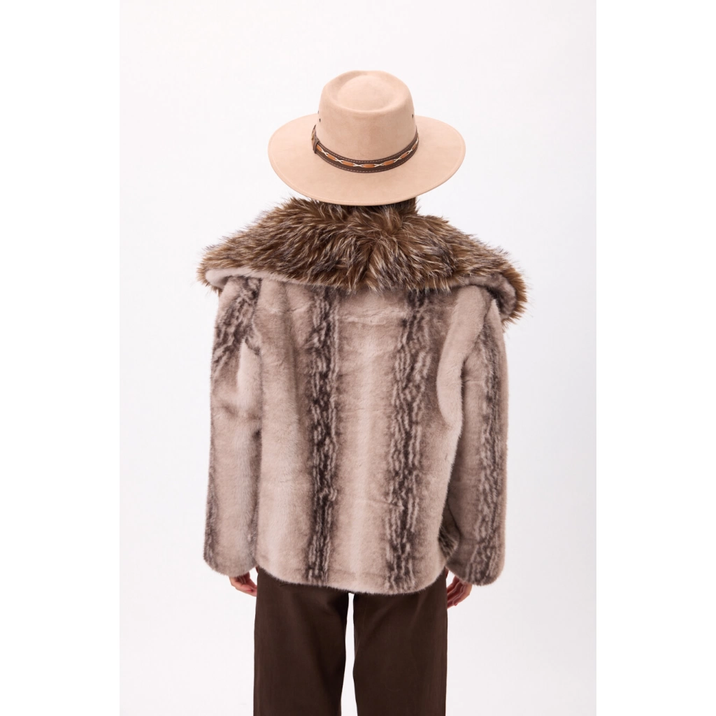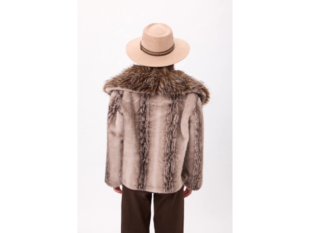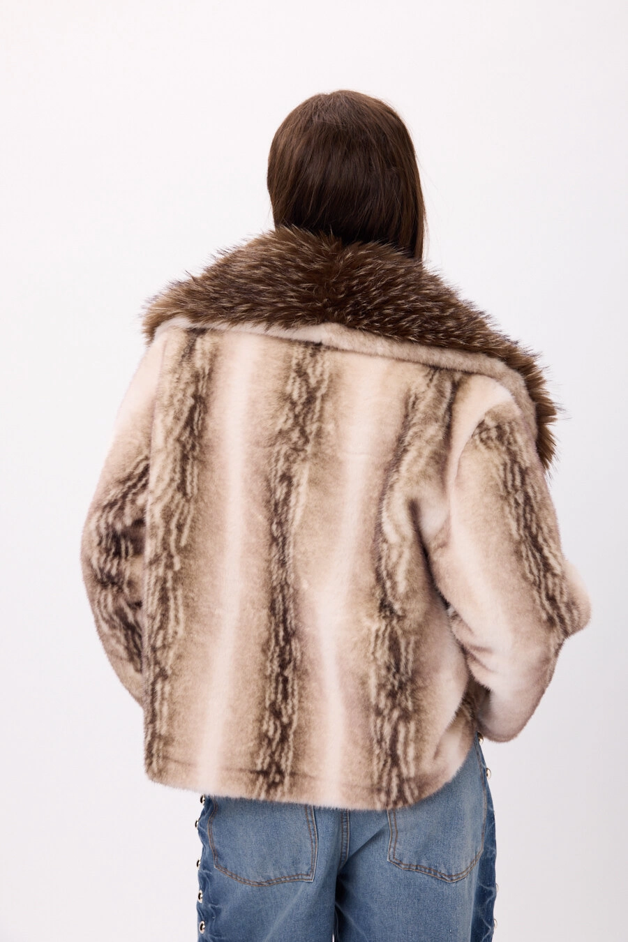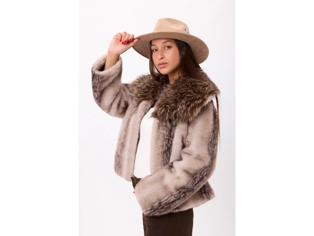 Campera corta de piel sintética súper abrigada, con cuello amplio de pelo Talle único.