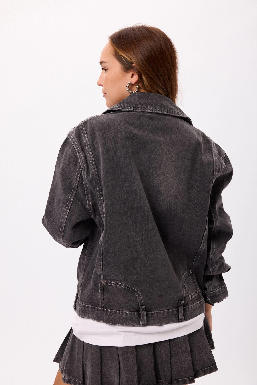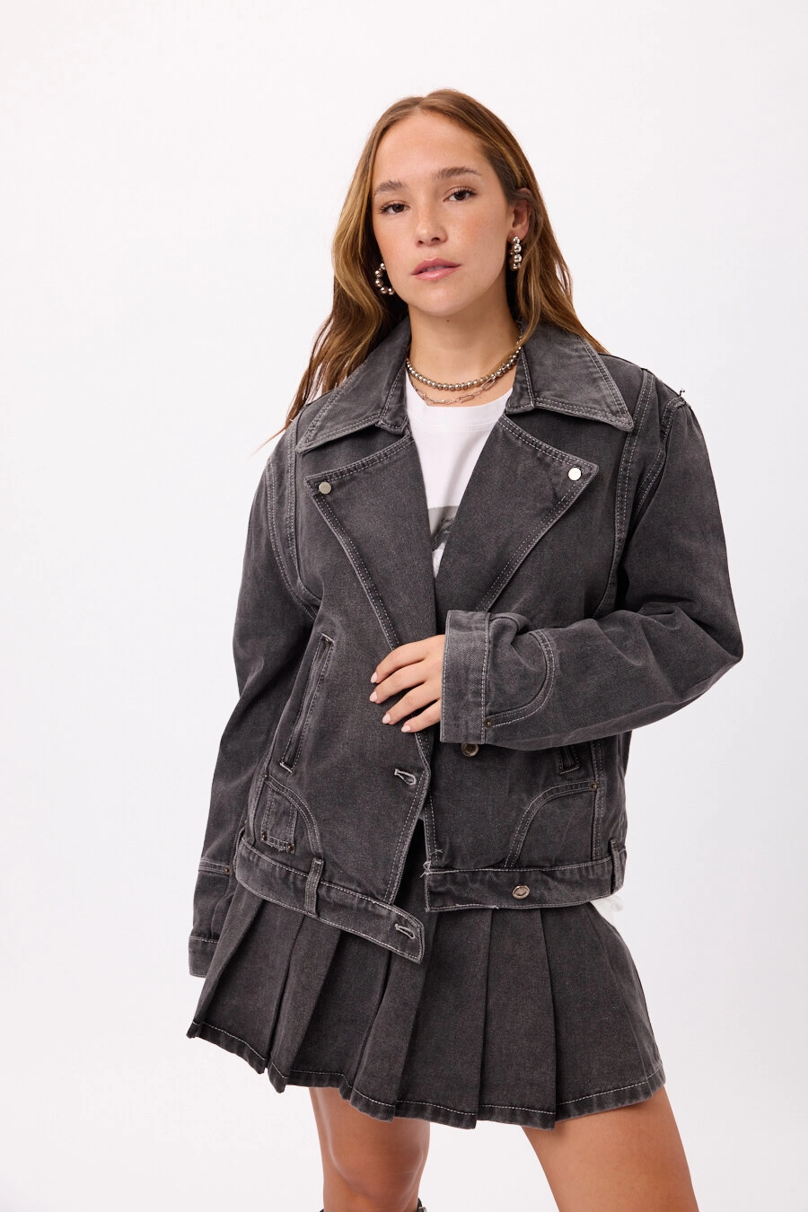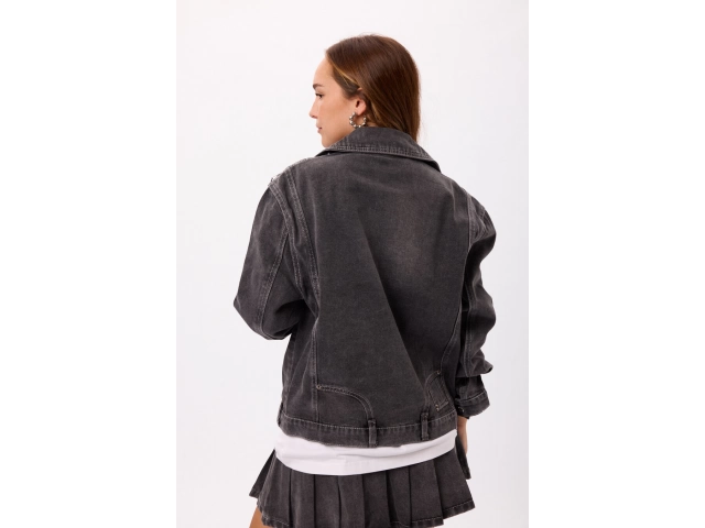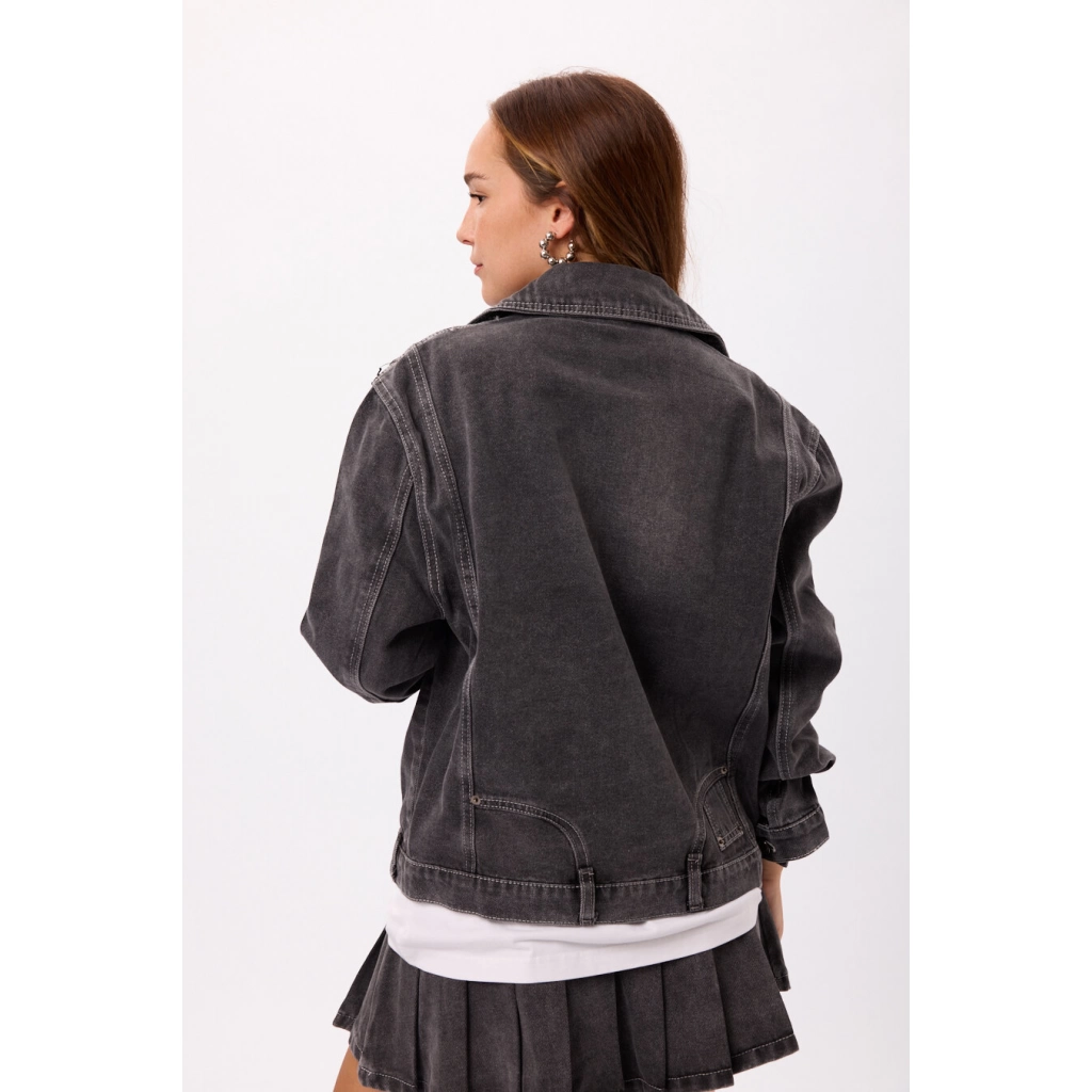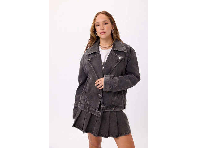 Campera Denim Negra Talles: S / M / L Color: Negro Campera estilo biker en denim lavado Terminación con efecto desgastado Ideal para looks urbanos y combinable con cualquier outfit