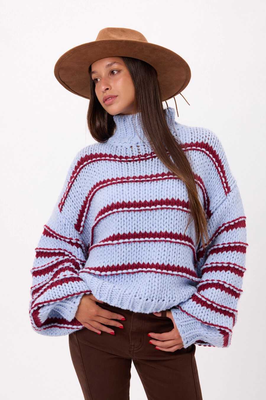 Sweater de hilo Talle: S/M COLORES: Celeste/Beige/Marron CANTIDAD POR CAJA:30 UNIDADES