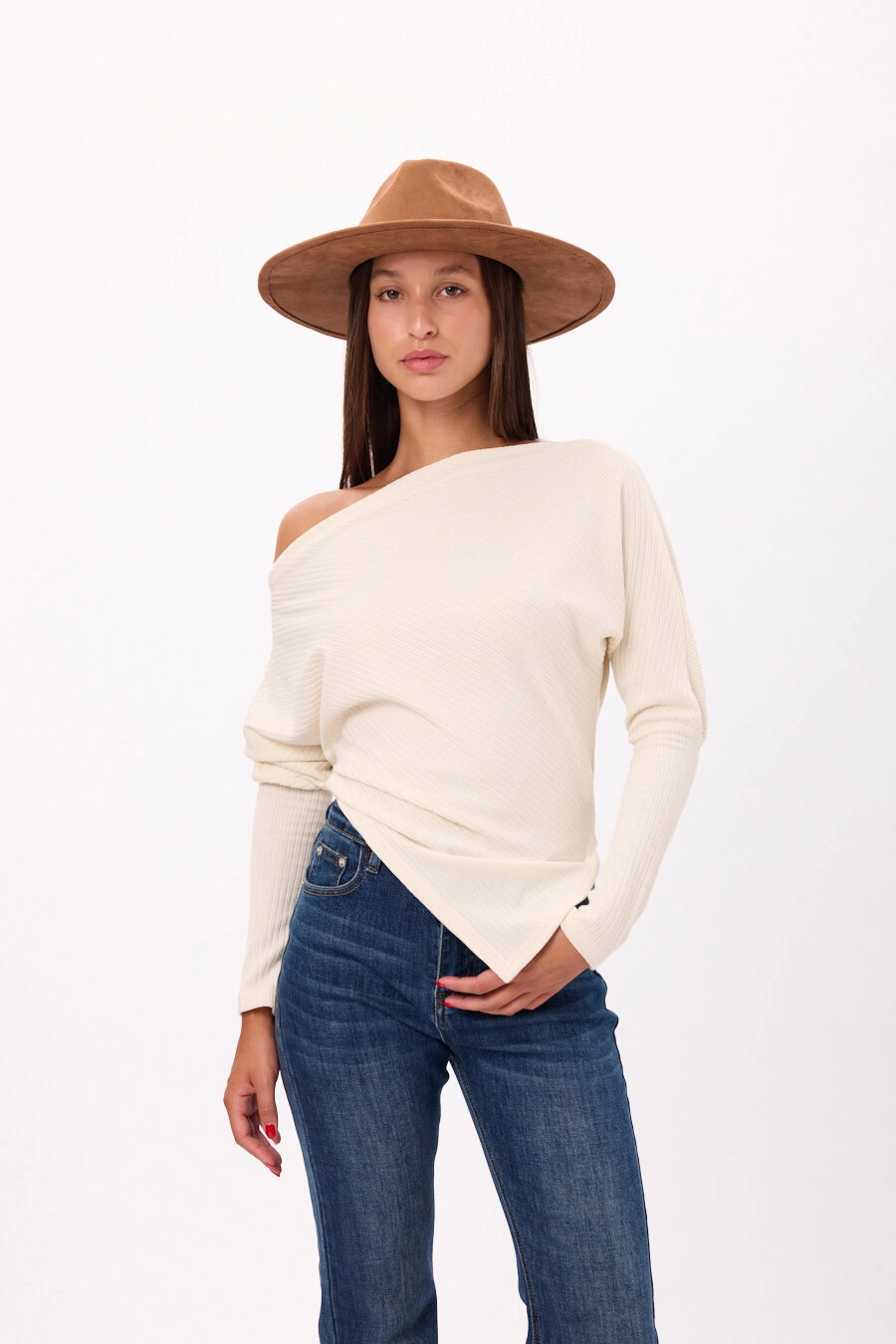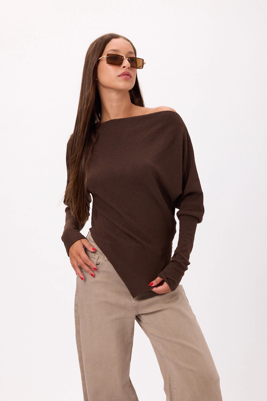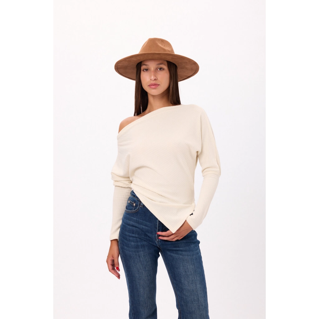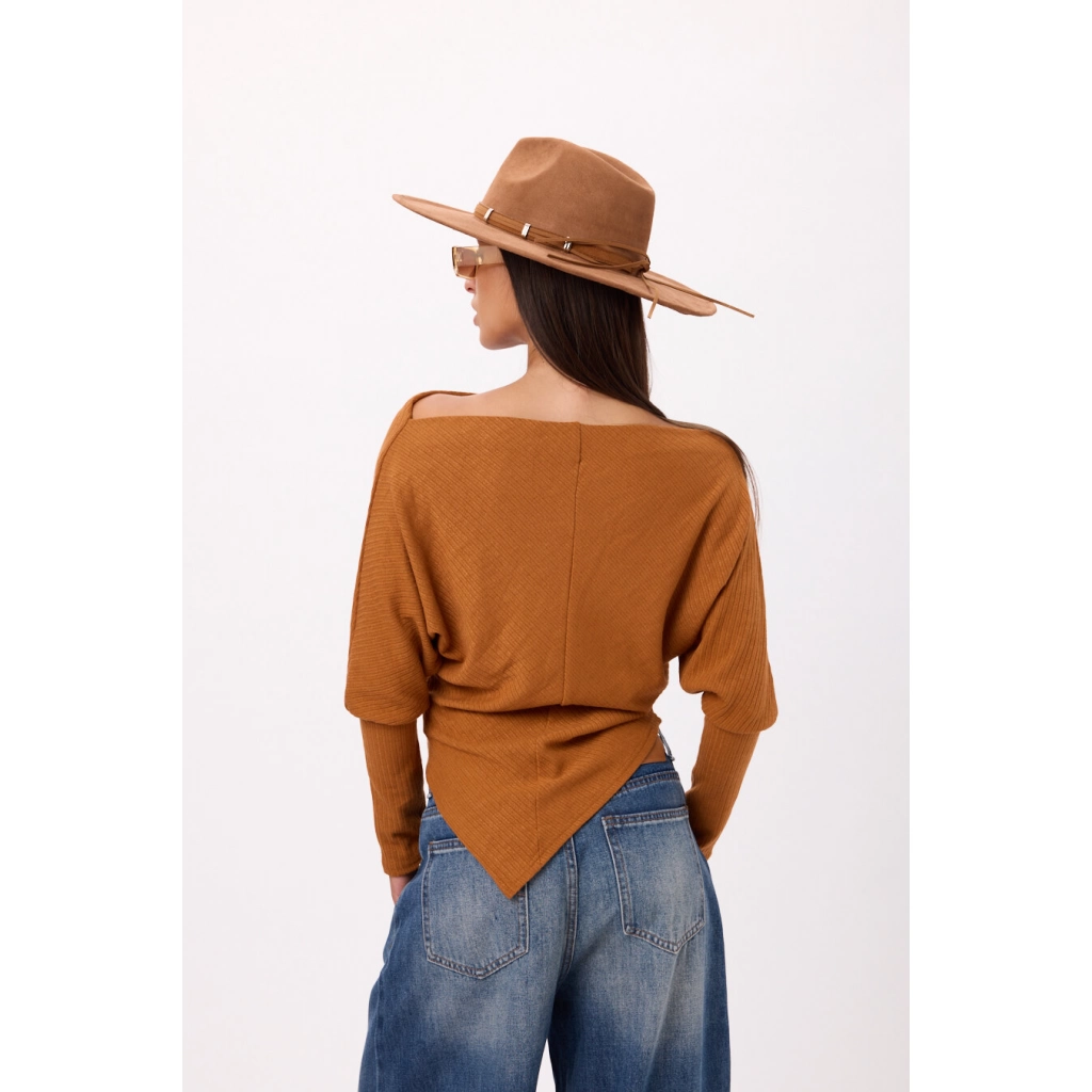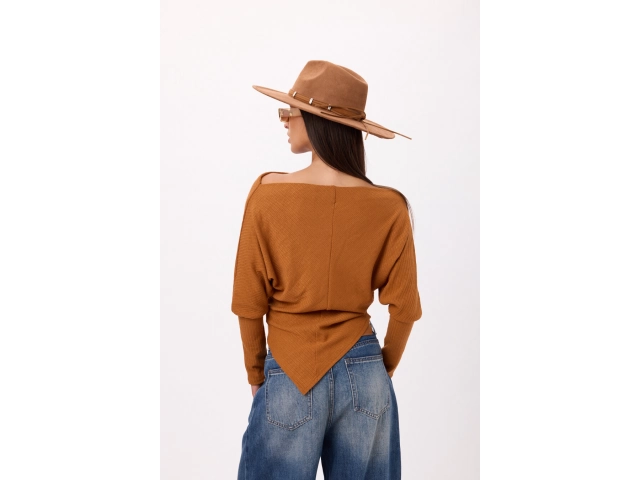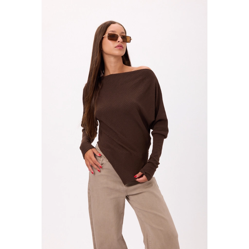 Sweater tejido con diseño asimétrico en pico Disponible en 3 colores. Talle único.