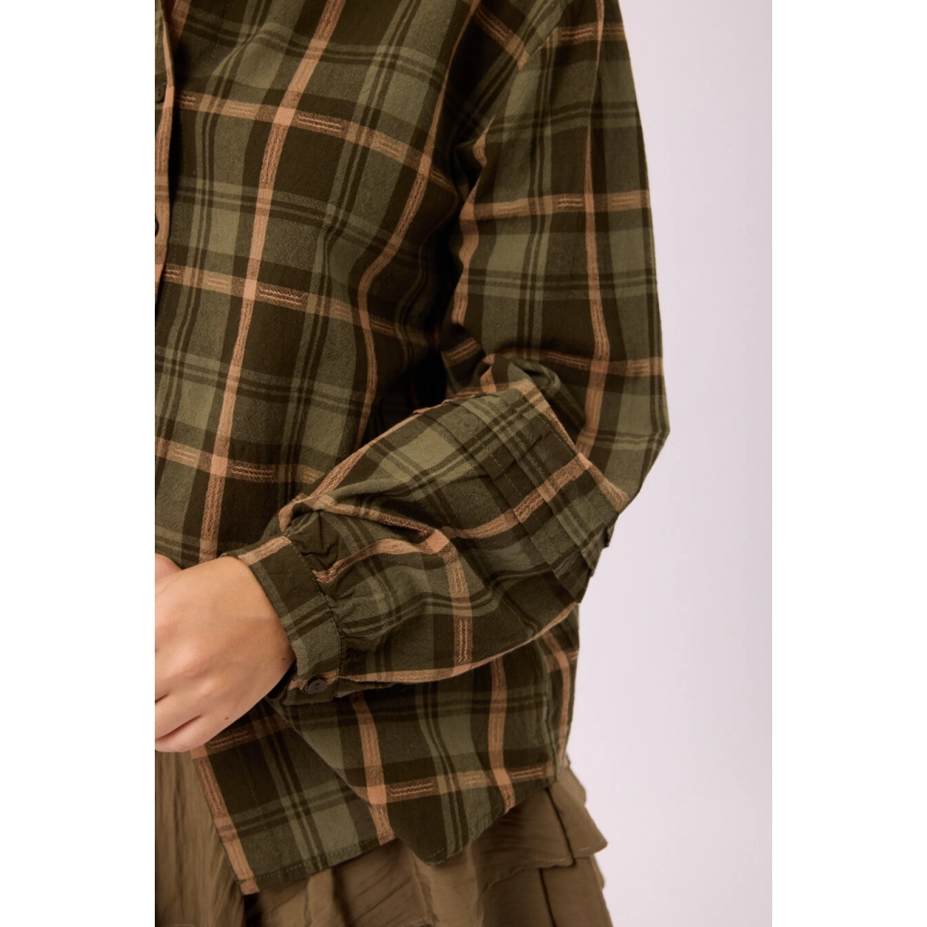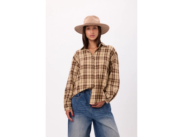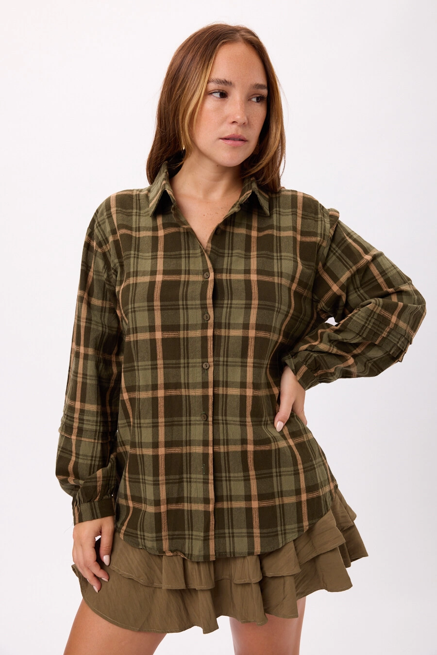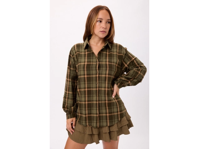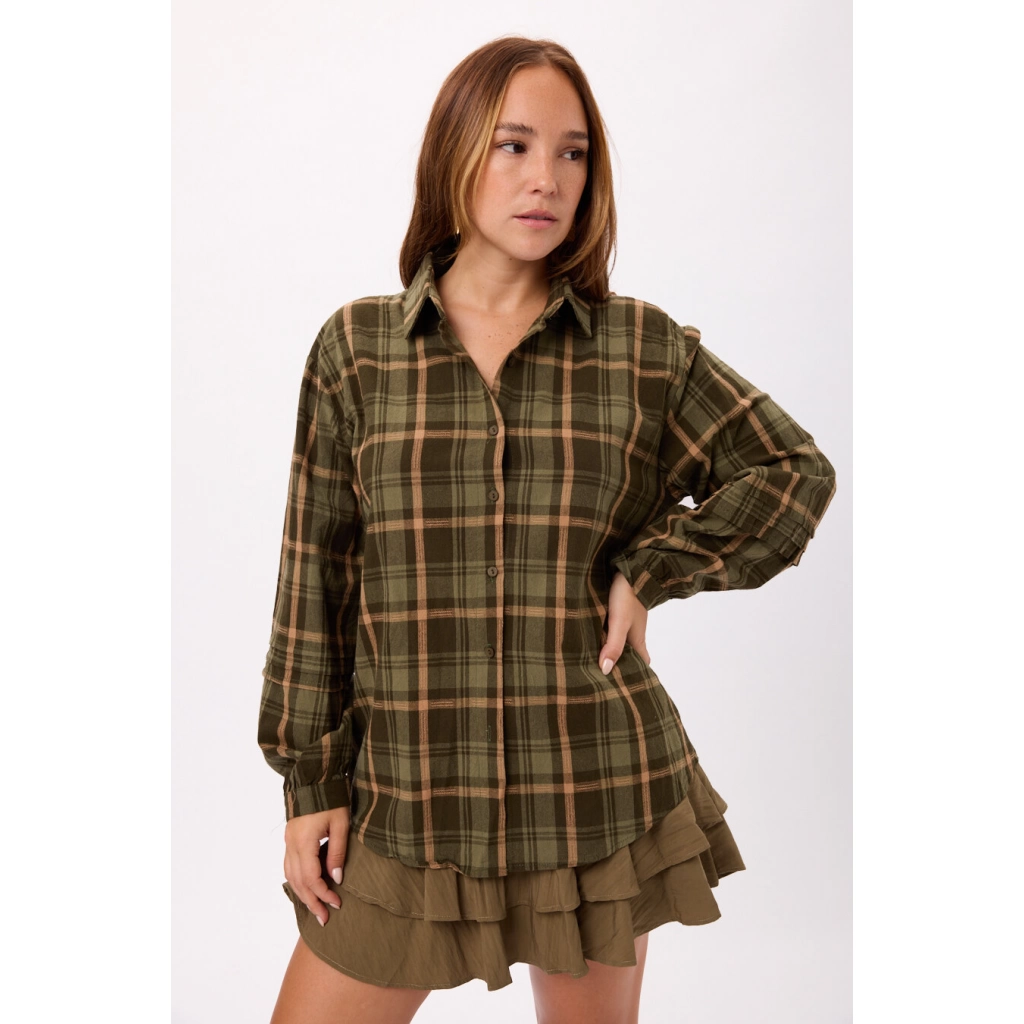 Camisa oversize a cuadros, manga larga Colores: verde/amarillo