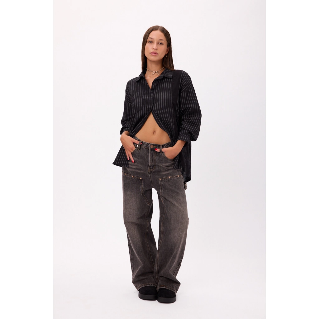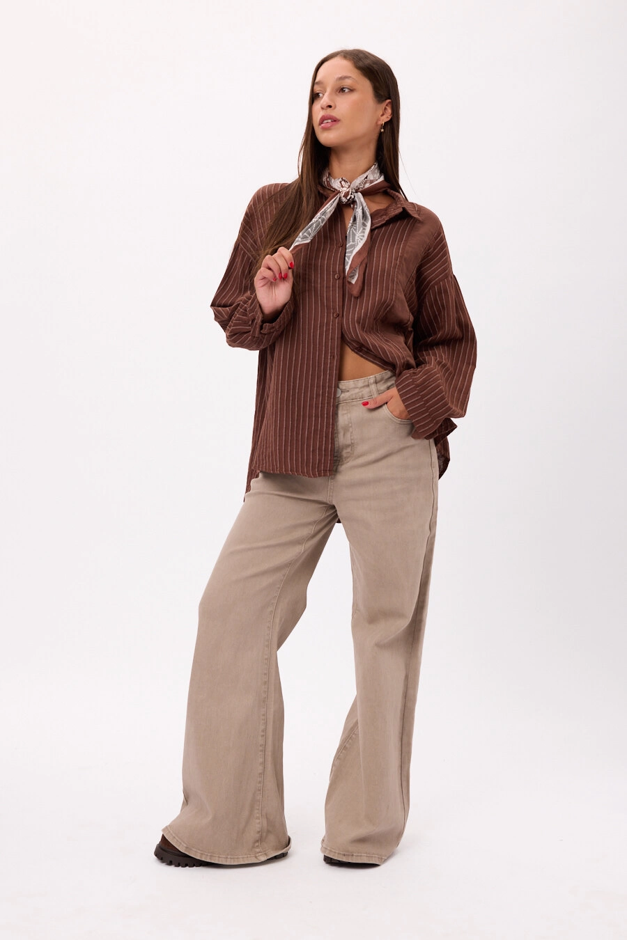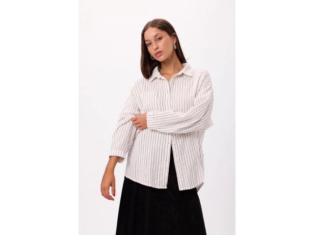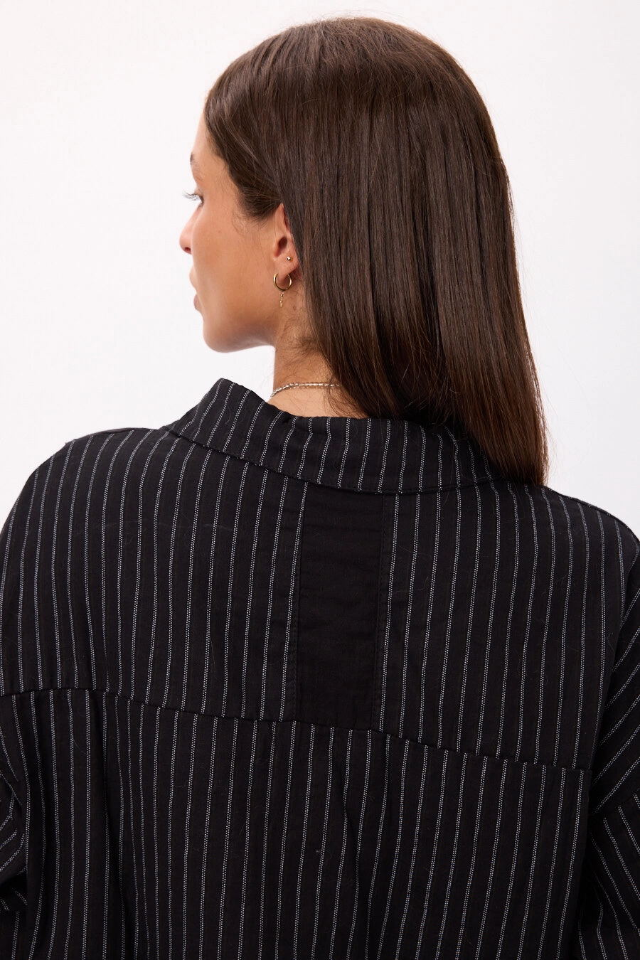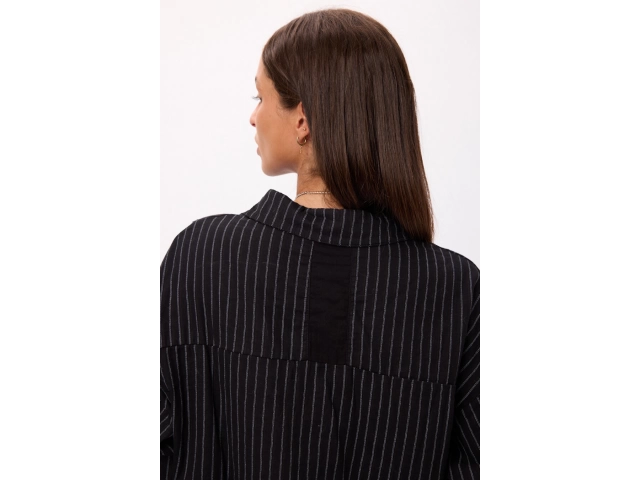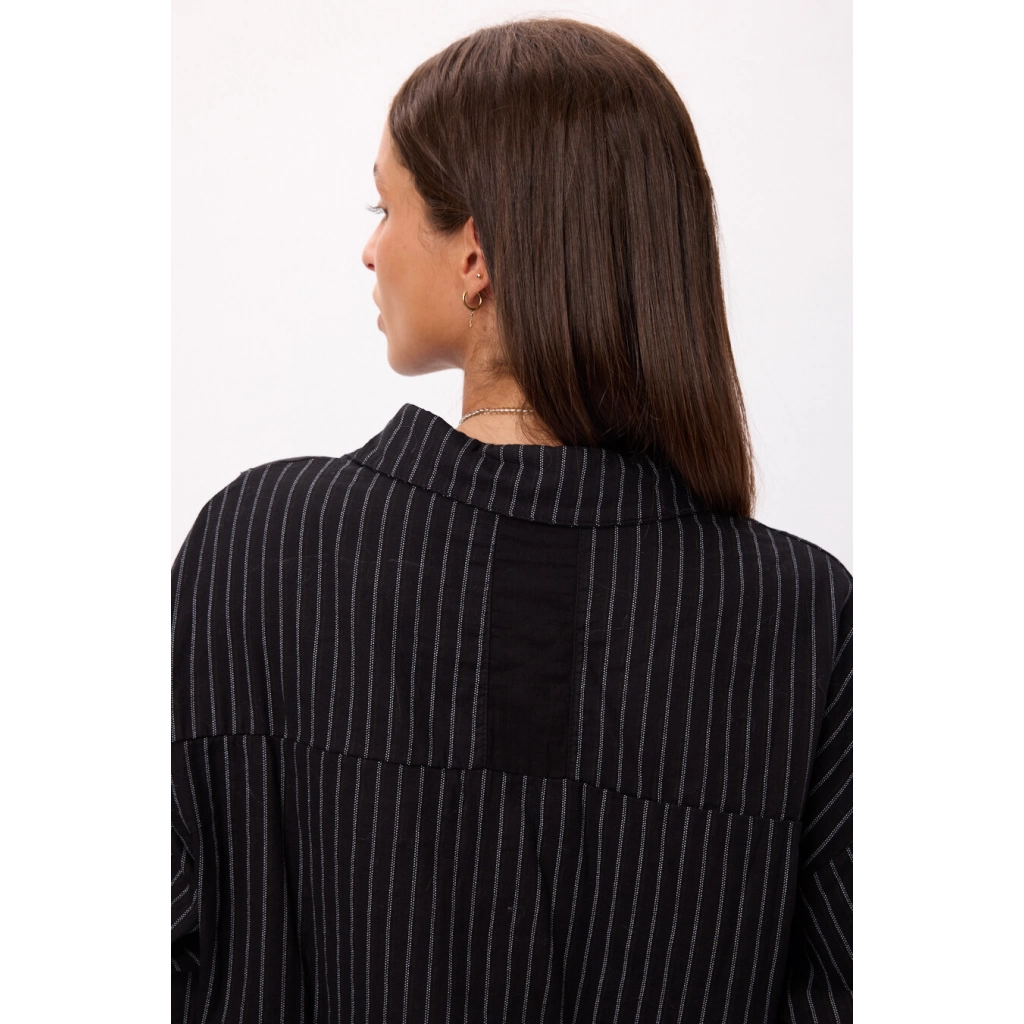Camisa oversize a rayas, manga larga y calce relajado. Talle único. Colores: Negro, Blanco y Marrón.
