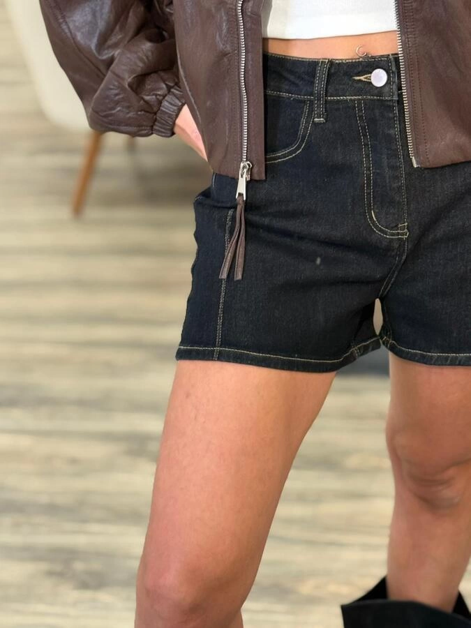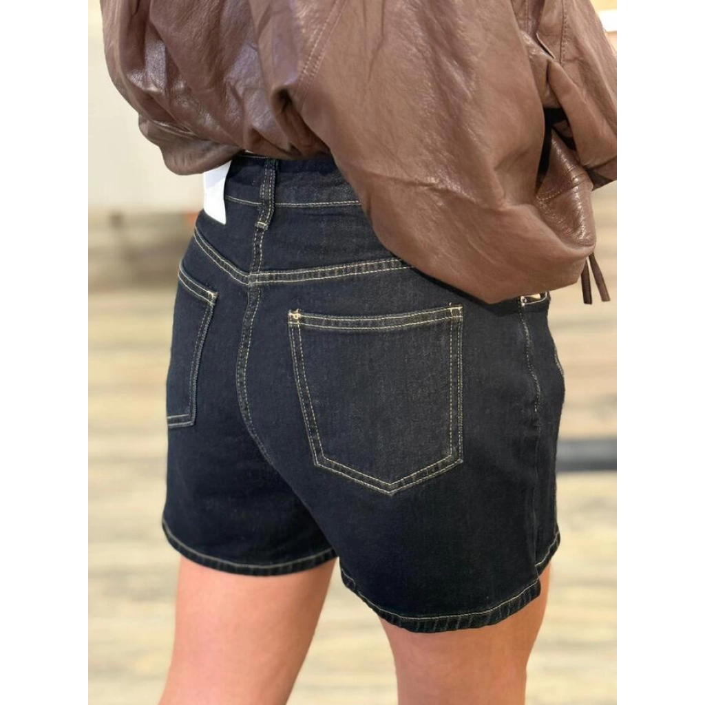 Short de jean clásico de tiro medio, confeccionado en denim resistente con costuras a la vista. Su diseño básico y versátil lo convierte en un infaltable para outfits casuales de verano. Disponible en tallas S / M / L / XL / XXL.
