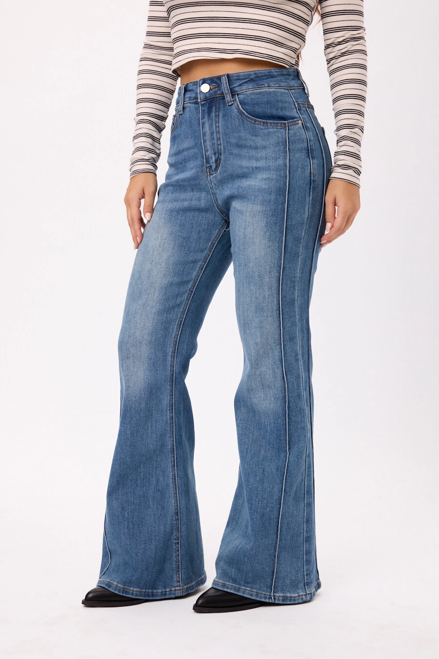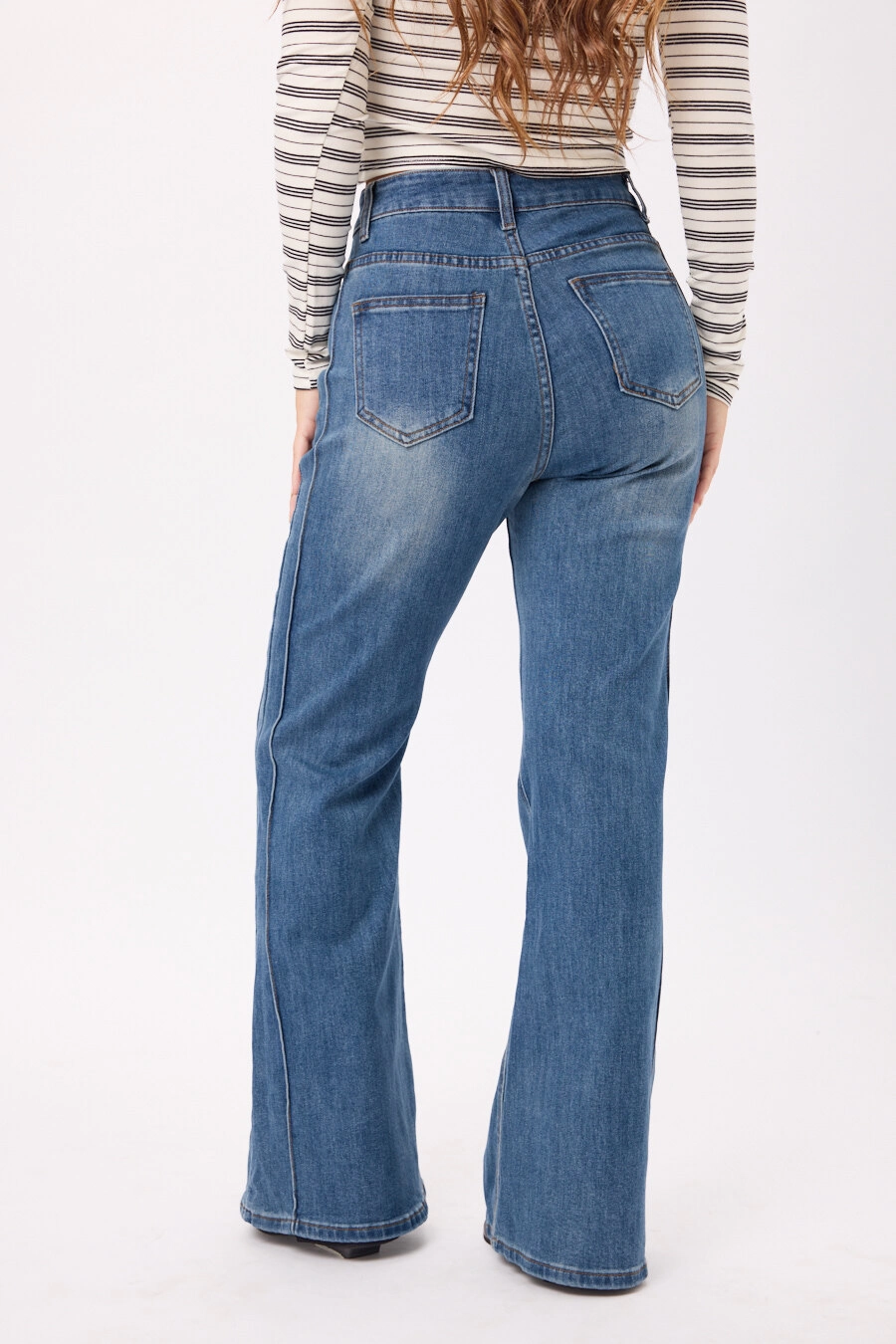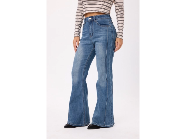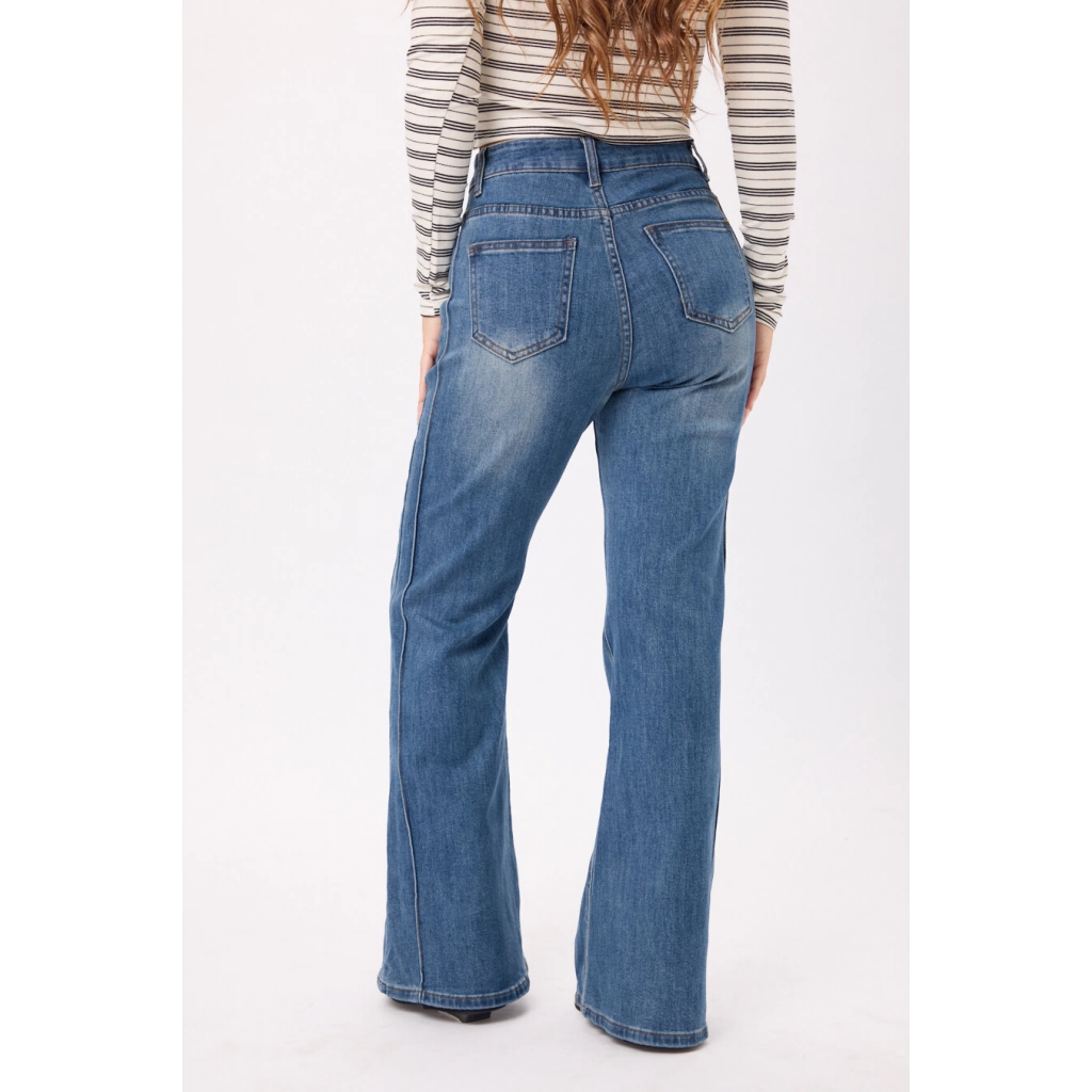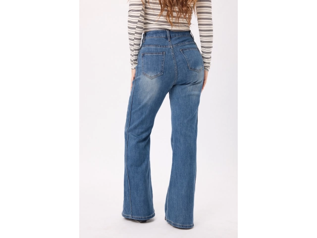 Jean wide leg tiro alto en denim, con pierna amplia y calce cómodo. Colores: negro/azul. Talles disponibles: S/M/L/XL.