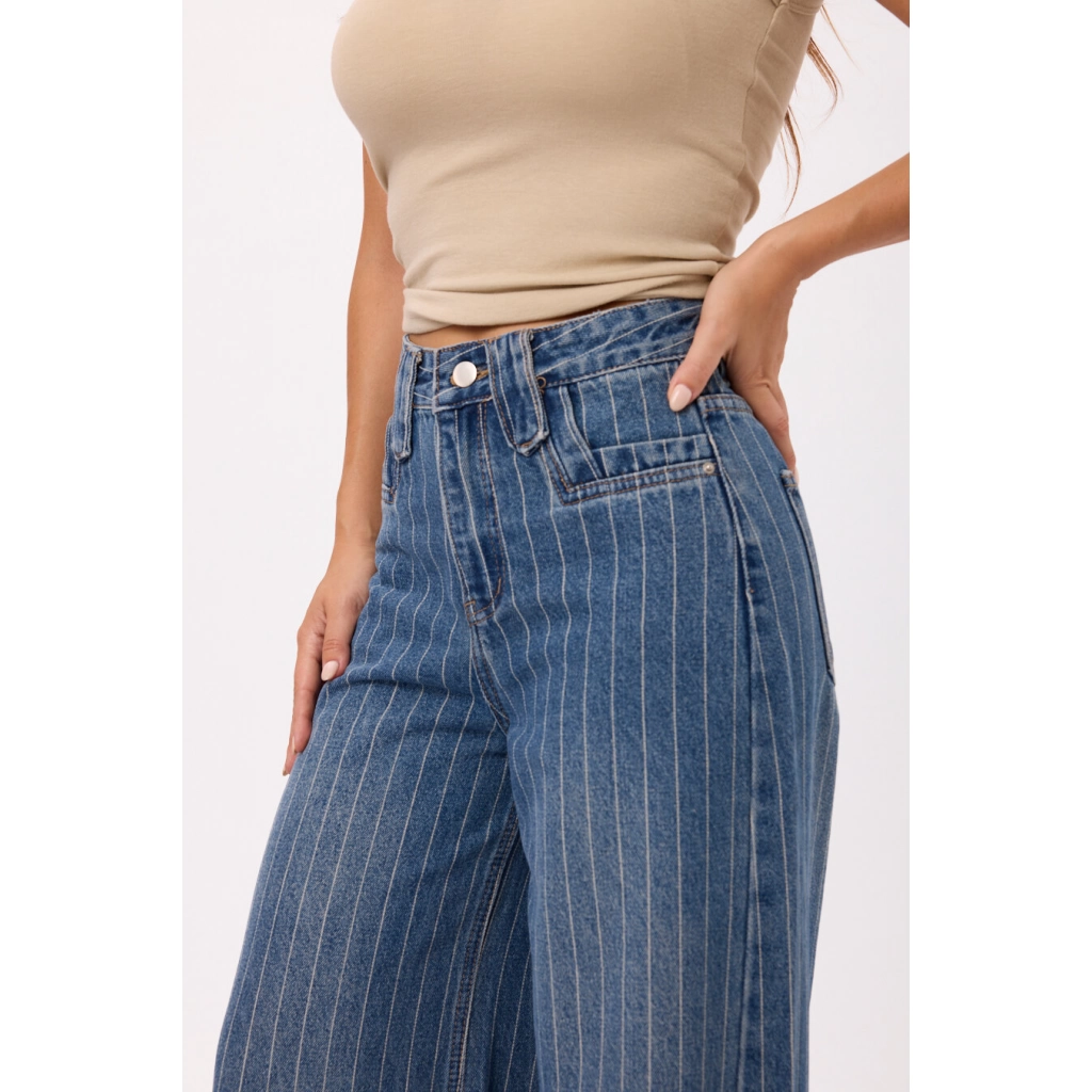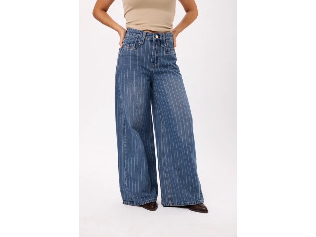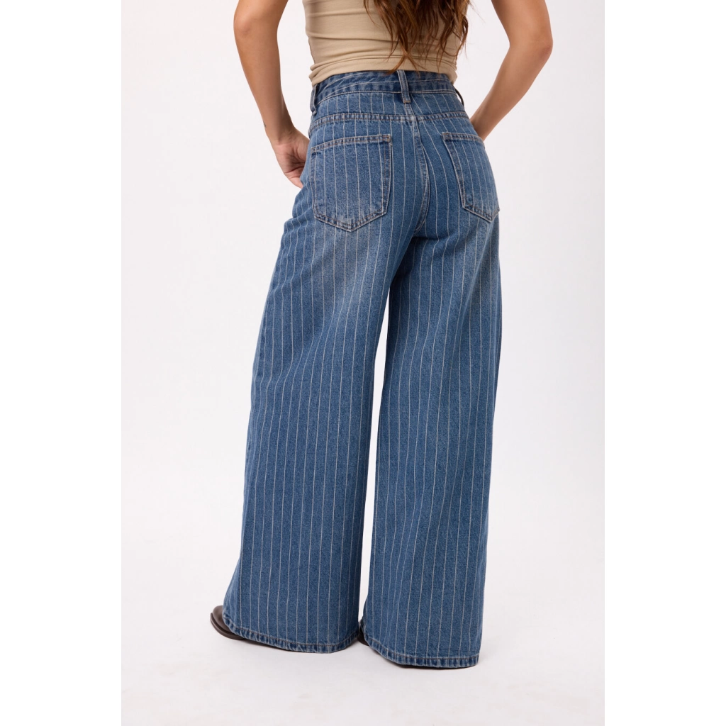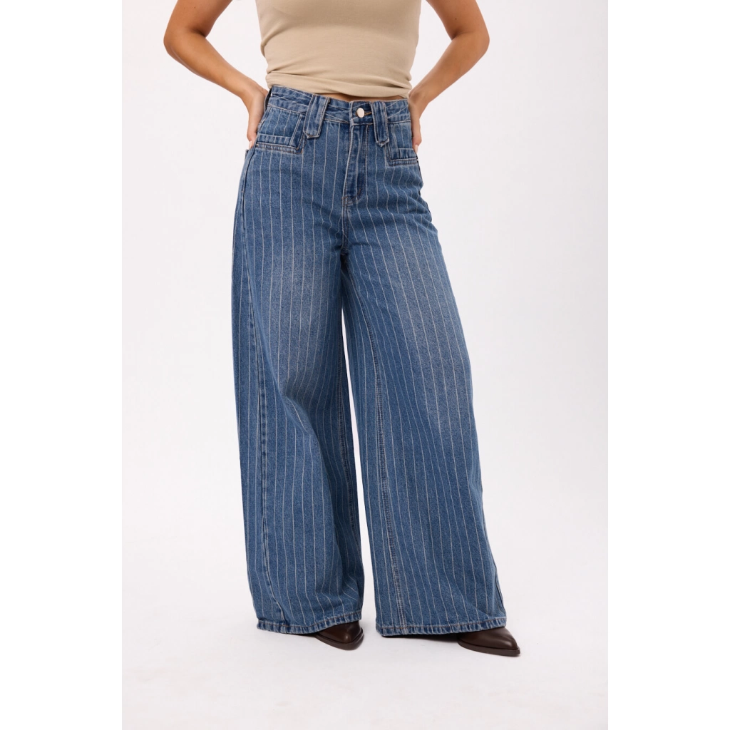 Jean tiro alto con pierna extra ancha y calce cómodo. Talles disponibles: M/L/XL/XXL.