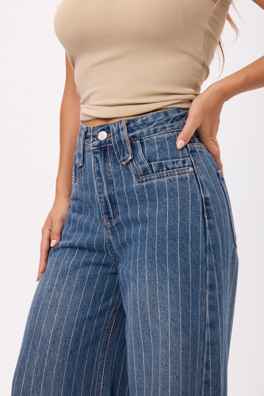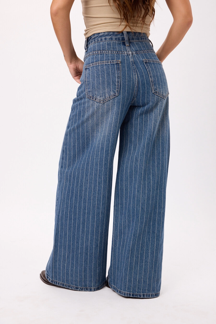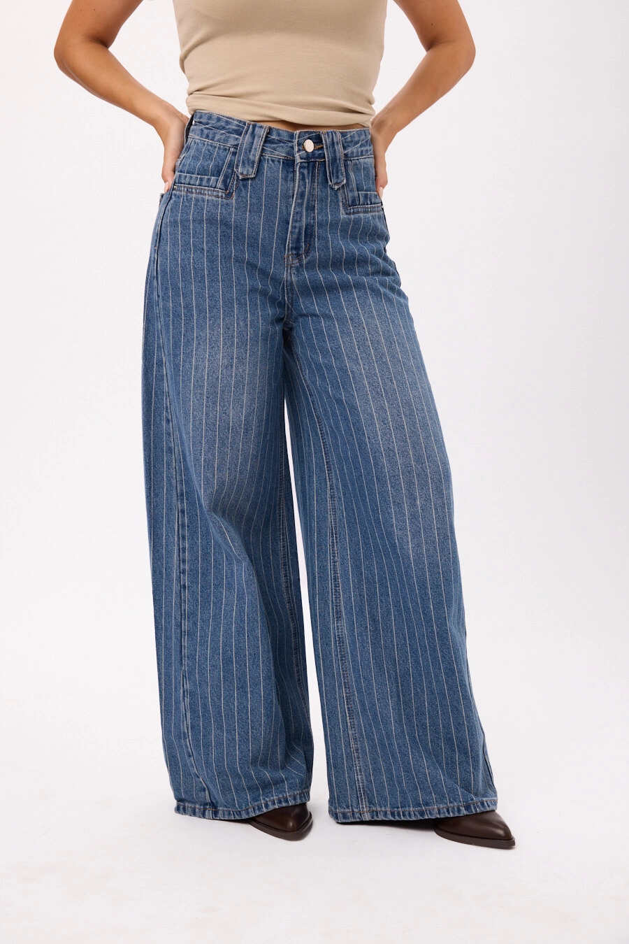 Jean tiro alto con pierna extra ancha y calce cómodo. Talles disponibles: M/L/XL/XXL.