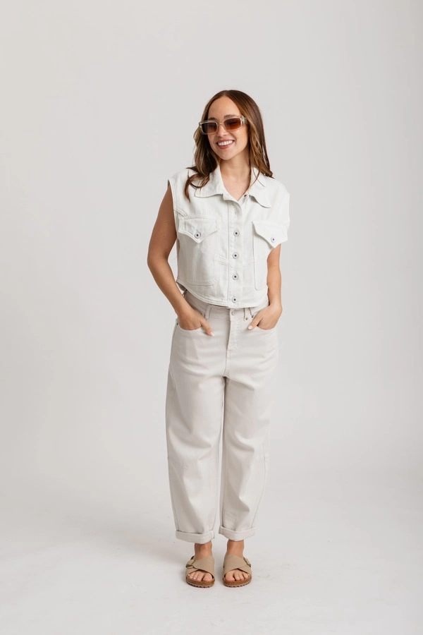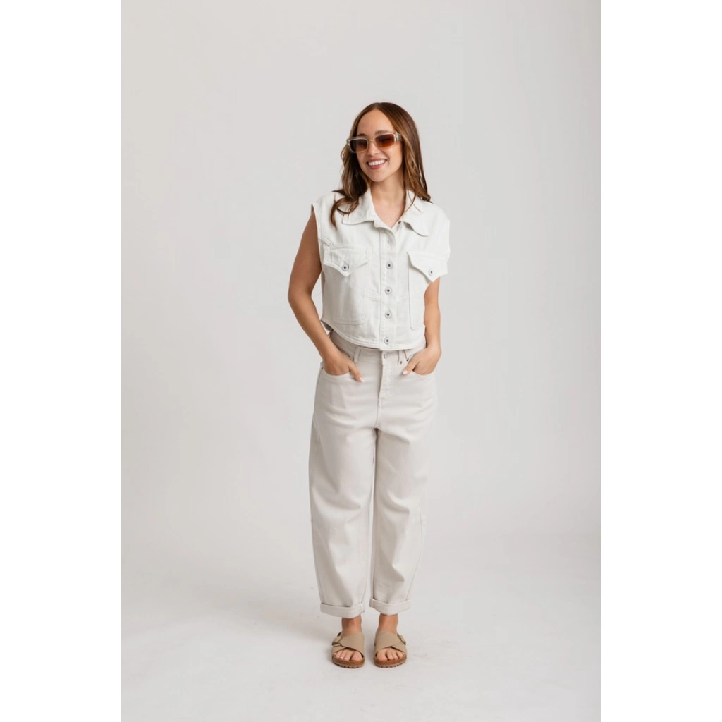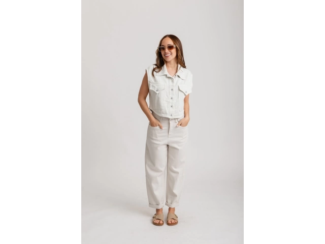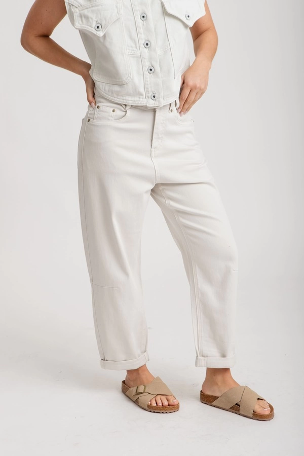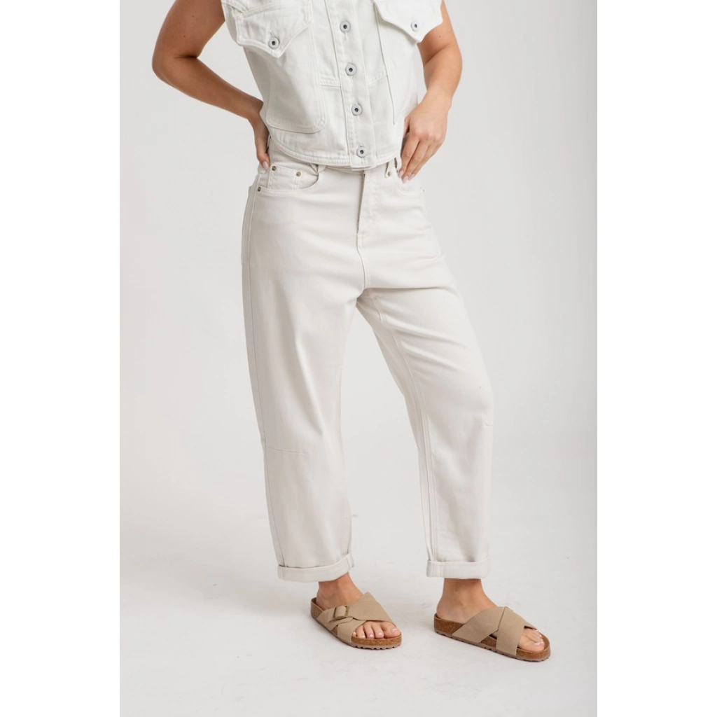 Tiro alto, con cintura anatómica. Diseño de pierna ancha tipo palazzo, terminación recta, sin desgastes.