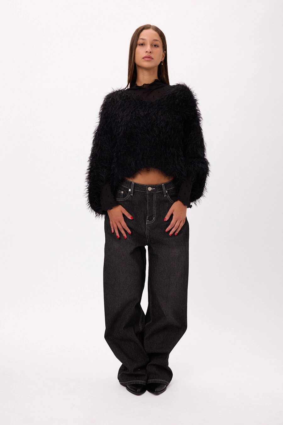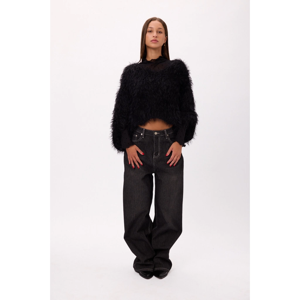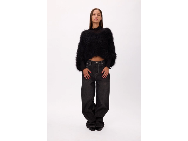 Jean wide leg tiro alto Color negro. Talles disponibles: S/M/L/XL.