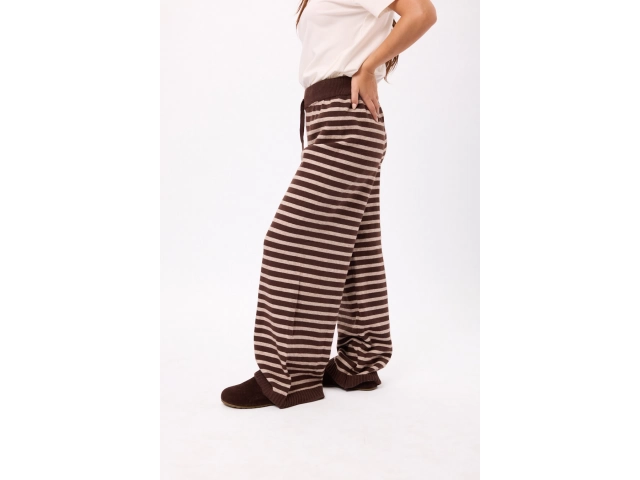 Pantalón a rayas con cintura elástica y cordón ajustable Color: marrón café/chocolate