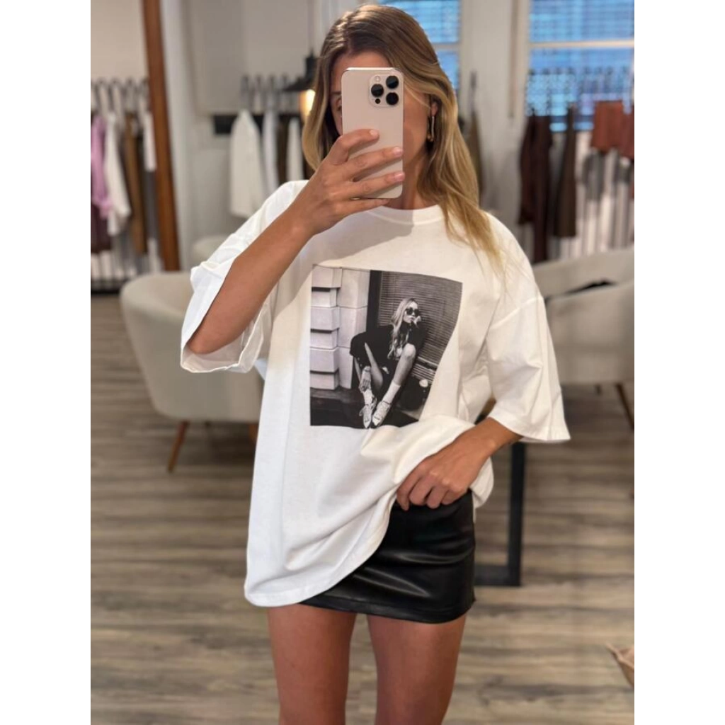 Camiseta unisex de corte relajado con estampado fotográfico frontal. Disponible en blanco, beige y negro. Tejido suave y ligero, ideal para un look casual y moderno. Perfecta para combinar con jeans o shorts y aportar un toque urbano a cualquier outfit.